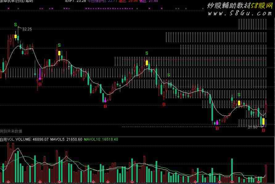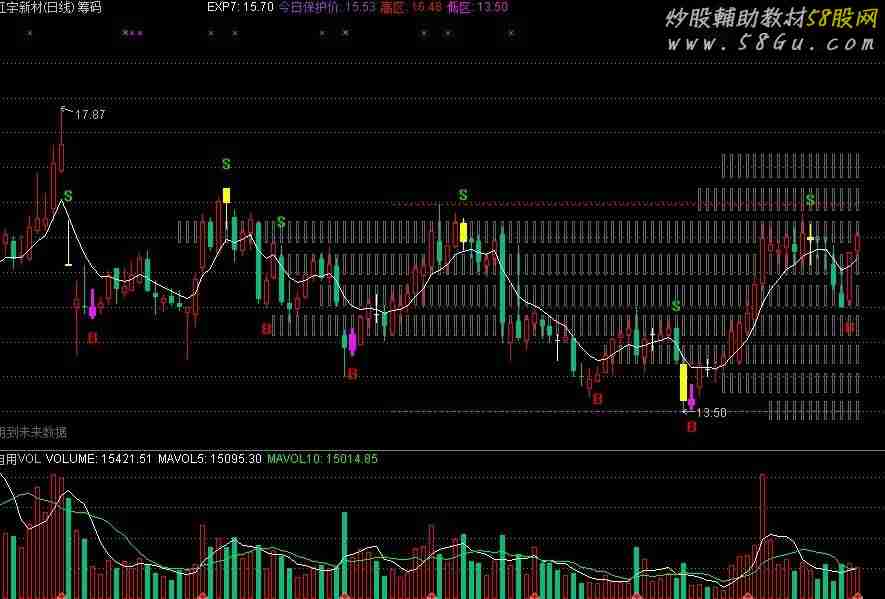 TS:=130; N:=99; M:=3; MT:=3; M1:=5; M2:=7; M3:=21; M4:=12; M5:=50; DA1:=IF(TS>TOTALBARSCOUNT,TOTALBARSCOUNT,TS); DA:=IF(CURRBARSCOUNT>DA1,0,DA1); HI:=REFDATE(HHV(H,DA),DATE); LO:=REFDATE(LLV(L,DA),DATE); C1:=IF(CURRBARSCOUNT<=DA,C,DRAWNULL); GZ:=EXP(LN(HI/LO)/10); LH1:=SUM(IF(C1>=(HI/GZ),V,0),DA); LH2:=SUM(IF(C1>=(HI/POW(GZ,2)) AND C1<(HI/GZ),V,0),DA); LH3:=SUM(IF(C1>=(HI/POW(GZ,3)) AND C1<(HI/POW(GZ,2)),V,0),DA); LH4:=SUM(IF(C1>=(HI/POW(GZ,4)) AND C1<(HI/POW(GZ,3)),V,0),DA); LH5:=SUM(IF(C1>=(HI/POW(GZ,5)) AND C1<(HI/POW(GZ,4)),V,0),DA); LH6:=SUM(IF(C1>=(HI/POW(GZ,6)) AND C1<(HI/POW(GZ,5)),V,0),DA); LH7:=SUM(IF(C1>=(HI/POW(GZ,7)) AND C1<(HI/POW(GZ,6)),V,0),DA); LH8:=SUM(IF(C1>=(HI/POW(GZ,8)) AND C1<(HI/POW(GZ,7)),V,0),DA); LH9:=SUM(IF(C1>=(LO*GZ) AND C1<LO*POW(GZ,2),V,0),DA); LH10:=SUM(IF(C1>=LO AND C1<LO*GZ,V,0),DA); L1:=REFDATE(HHV(LH1,DA),DATE),LINETHICK0; L2:=REFDATE(HHV(LH2,DA),DATE),LINETHICK0; L3:=REFDATE(HHV(LH3,DA),DATE),LINETHICK0; L4:=REFDATE(HHV(LH4,DA),DATE); L5:=REFDATE(HHV(LH5,DA),DATE); L6:=REFDATE(HHV(LH6,DA),DATE); L7:=REFDATE(HHV(LH7,DA),DATE); L8:=REFDATE(HHV(LH8,DA),DATE); L9:=REFDATE(HHV(LH9,DA),DATE); L10:=REFDATE(HHV(LH10,DA),DATE); SS:=(L1+L2+L3+L4+L5+L6+L7+L8+L9+L10);STICKLINE(CEILING(DA*L1/SS)*3>=CURRBARSCOUNT,HI*N/100,(HI/GZ),1,1)COLOR656566,LINETHICK1; STICKLINE(CEILING(DA*L2/SS)*3>=CURRBARSCOUNT,HI/POW(GZ,1)*N/100,HI/POW(GZ,2),1,1)COLOR656566,LINETHICK1; STICKLINE(CEILING(DA*L3/SS)*3>=CURRBARSCOUNT,HI/POW(GZ,2)*N/100,HI/POW(GZ,3),1,1)COLOR656566,LINETHICK1; STICKLINE(CEILING(DA*L4/SS)*3>=CURRBARSCOUNT,HI/POW(GZ,3)*N/100,HI/POW(GZ,4),1,1)COLOR656566,LINETHICK1; STICKLINE(CEILING(DA*L5/SS)*3>=CURRBARSCOUNT,HI/POW(GZ,4)*N/100,HI/POW(GZ,5),1,1)COLOR656566,LINETHICK1; STICKLINE(CEILING(DA*L6/SS)*3>=CURRBARSCOUNT,HI/POW(GZ,5)*N/100,HI/POW(GZ,6),1,1)COLOR656566,LINETHICK1; STICKLINE(CEILING(DA*L7/SS)*3>=CURRBARSCOUNT,HI/POW(GZ,6)*N/100,HI/POW(GZ,7),1,1)COLOR656566,LINETHICK1; STICKLINE(CEILING(DA*L8/SS)*3>=CURRBARSCOUNT,LO*POW(GZ,2),LO*POW(GZ,3)*N/100,1,1)COLOR656566,LINETHICK1; STICKLINE(CEILING(DA*L9/SS)*3>=CURRBARSCOUNT,LO*POW(GZ,1),LO*POW(GZ,2)*N/100,1,1)COLOR656566,LINETHICK1; STICKLINE(CEILING(DA*L10/SS)*3>=CURRBARSCOUNT,LO,LO*POW(GZ,1)*N/100,1,1)COLOR656566,LINETHICK1; DRAWKLINE(H,O,L,C);JJ:=(CLOSE+HIGH+LOW)/3; {BS标志} DRAWICON((ZIG(3,5)>REF(ZIG(3,5),1)) AND (REF(ZIG(3,5),1)<=REF(ZIG(3,5),2)) AND (REF(ZIG(3,5),2)<=REF(ZIG(3,5),3)),LOW*0.98,7); DRAWICON((ZIG(3,5)<REF(ZIG(3,5),1)) AND (REF(ZIG(3,5),1)>=REF(ZIG(3,5),2)) AND (REF(ZIG(3,5),2)>=REF(ZIG(3,5),3)),HIGH*1.02,8); VAR1:=ZIG(3,10)<REF(ZIG(3,10),1) AND REF(ZIG(3,10),1)>REF(ZIG(3,10),2); VAR2:=ZIG(3,10)>REF(ZIG(3,10),1) AND REF(ZIG(3,10),1)<REF(ZIG(3,10),2); STICKLINE(VAR1,C,O,3,0),COLORYELLOW,LINETHICK2; STICKLINE(VAR1,C,O,1,0),COLORYELLOW,LINETHICK2; STICKLINE(VAR1,H,L,0,0),COLORYELLOW,LINETHICK2; STICKLINE(VAR2,C,O,3,0),COLORFF0FF0,LINETHICK2; STICKLINE(VAR2,C,O,2,0),COLORFF0FF0,LINETHICK2; STICKLINE(VAR2,H,L,1,0),COLORFF0FF0,LINETHICK2; DRAWTEXT(CROSS((REF(HIGH,1)+REF(LOW,1))/2,MA(CLOSE,20)+2*STD(CLOSE,20)),HIGH*1.06,'-落袋为安'),COLORYELLOW;EXP7:EXPMA(CLOSE,M2),COLORWHITE,LINETHICK1; 今日保护价:(REF(C,2)+REF(C,1)+O)/3 ,COLORCC3299,NODRAW; 高区:IF(CURRBARSCOUNT<=60, CONST(IF(ISLASTBAR=1,HHV(H, BARSLAST(CURRBARSCOUNT=60)),1)),DRAWNULL),COLORRED,DOTLINE; 低区:IF(CURRBARSCOUNT<=60, CONST(IF(ISLASTBAR=1,LLV(L, BARSLAST(CURRBARSCOUNT=60)),1)),DRAWNULL),COLORMAGENTA,DOTLINE; STICKLINE(CCI>=200 AND H>=高区,O,C,3,0),COLORBLUE; STICKLINE(CCI<=100 AND L<=低区,O,C,3,0),COLORYELLOW;   |