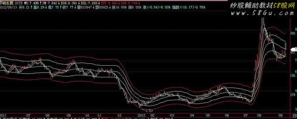 a:=eMA(SUM(KX*V,3)/SUM(V,3),13); CCC:=ABS(kx-eMA(a,13))/eMA(a,13); aj:=DMA(kx,CCC); b:=(EMA(COST(75),13)+A)/2; CC:=ABS(a-MA(b,13))/MA(b,13); xS:=DMA(A,CC),COLORMAGENTA; sm:(1*AJ+2*xs)/3,COLORFFC0FF; XSh:SM*(1+7/100),COLORYELLOW; XSl:SM*(1-7/100),COLORYELLOW; XST:SM*(1+14/100),COLORRED; XSD:SM*(1-14/100),COLORRED;