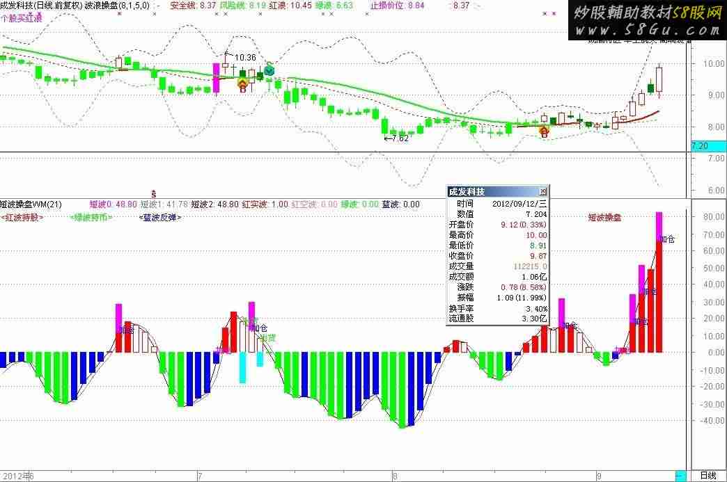 指标包含的内容红实波、红空波、绿色柱体、蓝色柱体表示四种波的颜色 短波0,短波1,短波2是画线使用的参数 短波操盘指标是一个短线指标,一般3~5天 由绿色柱体变为蓝色柱体 ,表示在弱势情况下的反弹 由蓝色柱体变为红色柱体,表示股价短期有向上走好的趋势,需要配合成交量来判定 由蓝色柱体变为绿色柱体,表示多头力量不够,短期反弹终结,将继续下跌 由红实波变为红空波,表示在强势情况下的回调,需等待红实波出现再介入 由红空波变为红实波,表示在强势情况下的回调洗盘完毕,股价将进一步走高 由红空波变为绿色柱体 ,表示股价进一步走坏 红实波中的洋红色柱体表示强势中大幅进货,边拉升边进货 红实波中的青波表示高位大幅出货,股价调整在即 蓝色柱体中的洋红色柱体表示弱势中大幅进货,等下机会买入 绿色柱体中的青波表示大幅出货,市场大幅走弱 用到是v4.17版本的通达信 导入