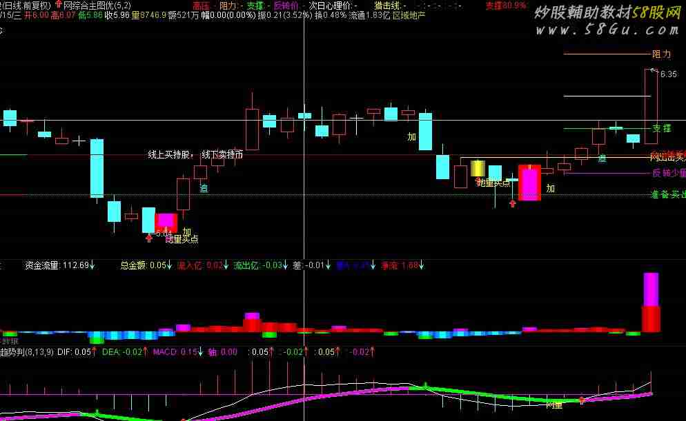 {参数:N 1 100 5;S022} A11:=(REF(EMA(CLOSE,5),1)); B:=CROSS(EMA(CLOSE,5),EMA(SLOPE(CLOSE,21)*20+CLOSE,42)); DRAWTEXT(B,LOW*0.995,'追'),COLORFFFF00,LINETHICK2; RSV:=(CLOSE-LLV(LOW,9))/(HHV(HIGH,9)-LLV(LOW,9))*100; K:=SMA(RSV,3,1); D:=SMA(K,3,1); J:=3*K-2*D; DRAWTEXT(CROSS(J,D),LOW*0.98,'加'),COLOR00FFFF,LINETHICK2; VAR29:=(CLOSE-LLV(LOW,60))/(HHV(HIGH,60)-LLV(LOW,60))*100; VAR2A:=SMA(VAR29,5,1); VAR2B:=SMA(VAR2A,10,1); VAR2C:=CROSS(VAR2B,VAR2A); VAR2D:=VAR2B>80 OR VAR2A>80; VAR2E:=VAR2C AND VAR2D; VAR33:=HIGH; VAR34:=LOW; 逃顶:=STICKLINE(VAR2E,VAR33,VAR34,4,0); DRAWTEXT(CROSS((REF(HIGH,1)+REF(LOW,1))/2,MA(CLOSE,20)+2*STD(CLOSE,20)),HIGH*1.01,'抛'),COLORGREEN; X6:=REF(CLOSE,1); X7:=SMA(MAX(CLOSE-X6,0),7,1)/SMA(ABS(CLOSE-X6),7,1)*100; X8:=CROSS(79,X7); X9:=FILTER(X8,4);DRAWTEXT(X9,HIGH*1.03,'出货'),COLOR9000F5; STICKLINE(CROSS(0.9,1/VOL*1000>0.01 AND "KDJ.J"<0),L,OPEN,3.15,0),COLOR337777; STICKLINE(CROSS(0.9,1/VOL*1000>0.01 AND "KDJ.J"<0),L,OPEN,2.45,0),COLOR339999; STICKLINE(CROSS(0.9,1/VOL*1000>0.01 AND "KDJ.J"<0),L,OPEN,1.75,0),COLOR33BBBB; STICKLINE(CROSS(0.9,1/VOL*1000>0.01 AND "KDJ.J"<0),L,OPEN,1.05,0),COLOR33DDDD; STICKLINE(CROSS(0.9,1/VOL*1000>0.01 AND "KDJ.J"<0),L,OPEN,0.35,0),COLOR33FFFF; DRAWTEXT(CROSS(0.9,1/VOL*1000>0.01 AND "KDJ.J"<0),L*0.99,'地量买点'),COLOR33FFFF; DRAWTEXT(CROSS(88,RSI),(HIGH*1.01),'R背'),COLOR00FF00; VAR2S:=(2*CLOSE+HIGH+LOW)/4; VAR3S:=IF(YEAR>=2099 AND MONTH>2,0,1); VAR4S:=LLV(LOW,5); VAR5S:=HHV(HIGH,4); 散户:=EMA((VAR2S-VAR4S)/(VAR5S-VAR4S)*100,4)*VAR3S; 庄家:=EMA(0.667*REF(散户,1)+0.333*散户,2)*VAR3S; STICKLINE(CROSS(散户,庄家) AND 散户<30,L,OPEN,3.15,0),COLOR770077; STICKLINE(CROSS(散户,庄家) AND 散户<30,L,OPEN,2.45,0),COLOR990099; STICKLINE(CROSS(散户,庄家) AND 散户<30,L,OPEN,1.75,0),COLORBB00BB; STICKLINE(CROSS(散户,庄家) AND 散户<30,L,OPEN,1.05,0),COLORDD00DD; STICKLINE(CROSS(散户,庄家) AND 散户<30,L,OPEN,0.35,0),COLORFF00FF; DRAWTEXT(CROSS(散户,庄家) AND 散户<30,L*0.99,'吸'),COLORFF00FF; DMLJ:=HHV(H,120); E:=(H+L+O+2*C)/5; CRTP:=E+(H-L); CRZL:=2*E-L; CRZC:=2*E-H; CRFZ:=E-(H-L); CRXL:=(E+CRTP+CRZL+CRZC+CRFZ)/5; 高:=CONST(CRTP),COLORRED; 阻:=CONST(CRZL),COLORC7C9FF; 支:=CONST(CRZC),COLOR7C9CFF; 反:=CONST(CRFZ),COLORDD00DD; 心理:=CONST(CRXL); 高压:DRAWLINE(S>1&&CURRBARSCOUNT=5+1,高,ISLASTBAR,高,1),COLOR0000FF; 阻力:DRAWLINE(S>1&&CURRBARSCOUNT=5+1,阻,ISLASTBAR,阻,1),COLOR0099FF; 支撑:DRAWLINE(S>1&&CURRBARSCOUNT=5+1,支,ISLASTBAR,支,1),COLORGREEN; 反转价:DRAWLINE(S>1&&CURRBARSCOUNT=5+1,反,ISLASTBAR,反,1),COLORDD00DD; 次日心理价:DRAWLINE(S>1&&CURRBARSCOUNT=5+1,心理,ISLASTBAR,心理,1),COLORFFFFFF; DRAWTEXT(ISLASTBAR,反,' 反 转少量买'),LINETHICK1,COLORDD00DD; DRAWTEXT(ISLASTBAR,支,' 支 撑'),LINETHICK1,COLOR00FF00; DRAWTEXT(ISLASTBAR,阻,' 阻 力'),LINETHICK1,COLOR0099FF; DRAWTEXT(ISLASTBAR,高,' 高 压'),LINETHICK1,COLOR0000FF; T1:=CONST(LLVBARS(LOW,10)); T1HIGH:=CONST(REF(HIGH,T1)); CC:=CONST(CURRBARSCOUNT); T2:=CONST(BARSLAST(CURRBARSCOUNT>CC+T1 AND H>T1HIGH)); T2HIGH:=CONST(REF(HIGH,T2)); T3:=CONST(BARSLAST(CURRBARSCOUNT>CC+T2 AND HIGH>T2HIGH)); T3HIGH:=CONST(REF(HIGH,T3)); 猎击线:DRAWLINE(CURRBARSCOUNT=T3+1, T3HIGH, ISLASTBAR, T3HIGH, 1),COLOR00FFFF,LINETHICK1; DRAWTEXT(ISLASTBAR, T3HIGH, '网出击买入')LINETHICK1,COLOR00FFFF; IF(S=1, CRTP,DRAWNULL),COLORRED; IF(S=1, CRZL,DRAWNULL),COLORC7C9FF; IF(S=1, CRZC,DRAWNULL),COLOR7C9CFF; IF(S=1, CRFZ,DRAWNULL),COLORDD00DD; IF(S=1, CRXL,DRAWNULL),COLORFFDDFF; A:=(3*C+H+L+O)/6; XJ:=(A+0.618*REF(A,1)+0.382*REF(A,2)+0.236*REF(A,3)+0.146*REF(A,4))/2.382; YCZXH:=(MA(HHV(A,2),5)+MA(HHV(A,2),13)+MA(HHV(A,2),21)+MA(HHV(A,2),32))/4; YCZXL:=(MA(LLV(A,2),5)+MA(LLV(A,2),13)+MA(LLV(A,2),21)+MA(LLV(A,2),32))/4; PJ:=(10*A+9*REF(A,1)+8*REF(A,2)+7*REF(A,3)+6*REF(A,4)+5*REF(A,5)+4*REF(A,6)+3*REF(A,7)+2*REF(A,8)+REF(A,9))/55; A1:=EMA(PJ,3),COLOR004000;A2:=EMA(PJ,5),COLOR004000; A3:=EMA(PJ,7),COLOR004000;A4:=EMA(PJ,9),COLOR004000; A5:=EMA(PJ,11),COLOR004000; LX:=REF(XJ,1); ZD:=(SMA(MAX(XJ-LX,0),5,1)/SMA(ABS(XJ-LX),5,1))*100; KX1:=(CLOSE>=OPEN) AND ZD>=50; KX2:=(CLOSE<OPEN) AND ZD>=50; KX3:=(CLOSE>=OPEN) AND ZD<50; KX4:=(CLOSE<OPEN) AND ZD<50; AAA2:=SUM(IF( CLOSE>REF(CLOSE,1),VOL*C,0),0); AAA3:=SUM(IF( CLOSE<REF(CLOSE,1),VOL*C,0),0); AAA4:=SUM(IF( CLOSE=REF(CLOSE,1),VOL*C,0),0); BBB1:=0; B1万元:=DVOL*DCLOSE/100; B1差:=B1万元-REF(B1万元,1); B2万元:=DVOL*DCLOSE/100; B2比:=B2万元/REF(B2万元,1); 净流入万元:=(AAA2-AAA3-0.5*AAA4); PM:=MA(净流入万元,1); PMA:=PM/REF(PM,1)>1; PMB:=REF(PMA,1)<1 AND PMA; 密码:=(EMA(MA(B1万元,2),2))/100000,COLORYELLOW,NODRAW; 二日比:=密码/REF(密码,1); 选股:=PMB AND 密码>REF(密码,1) AND 二日比>1 ,COLORRED,NODRAW; 均价线:=AMOUNT/V/100; 均价线2:=MA(均价线,3); 均价线5:=MA(均价线,5); 均价线10:=MA(均价线,10); 均价线30:=MA(均价线,30); 突破:=C>均价线2 AND 均价线2<REF(均价线2,1) AND REF(均价线2,1)<REF(均价线2,2) ANDREF(均价线2,2)<REF(均价线2,3) AND 选股; STICKLINE(突破,H,L,5,0),LINETHICK1,COLORRED; STICKLINE(突破,H,L,0.2,0),COLORYELLOW; STICKLINE(突破,O,C,2,0),LINETHICK1,COLORYELLOW; STICKLINE(突破,O,C,3,0),LINETHICK1,COLORMAGENTA; STICKLINE(突破,H,L,0,1),COLORMAGENTA; DRAWTEXT_FIX(ISLASTBAR,0,0,0,GNBLOCK); 均线:=EXPMA(C,12),COLORGRAY,LINETHICK2; 日:=50;昨前:=3; 高1:=REF(HHV(H,日),昨前); 低1:=REF(LLV(L,日),昨前); H4:=高1-(高1-低1)*0.618; H5:=高1-(高1-低1)*0.809; 支撑80.9%:REFDATE(H5,DATE),COLORRED; 支撑61.8%:REFDATE(H4,DATE),COLORGREEN,LINETHICK1; STICKLINE(CURRBARSCOUNT=1,支撑80.9%,支撑80.9%,300,-1),COLORGREEN; STICKLINE(CURRBARSCOUNT=1,支撑61.8%,支撑61.8%,300,-1),COLORRED; DRAWTEXT(CURRBARSCOUNT=30 AND 支撑61.8%,支撑61.8%,'线上买持股,线下卖持币'); DRAWTEXT(CURRBARSCOUNT=1 AND 支撑80.9%,支撑80.9%,'准 备 买 出'),COLORGREEN; DRAWTEXT(CURRBARSCOUNT=1 AND 支撑61.8%,支撑61.8%,'命运转折线'),COLORRED;