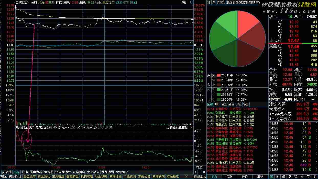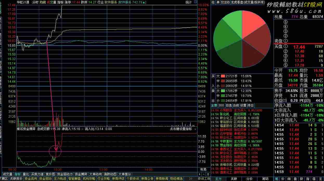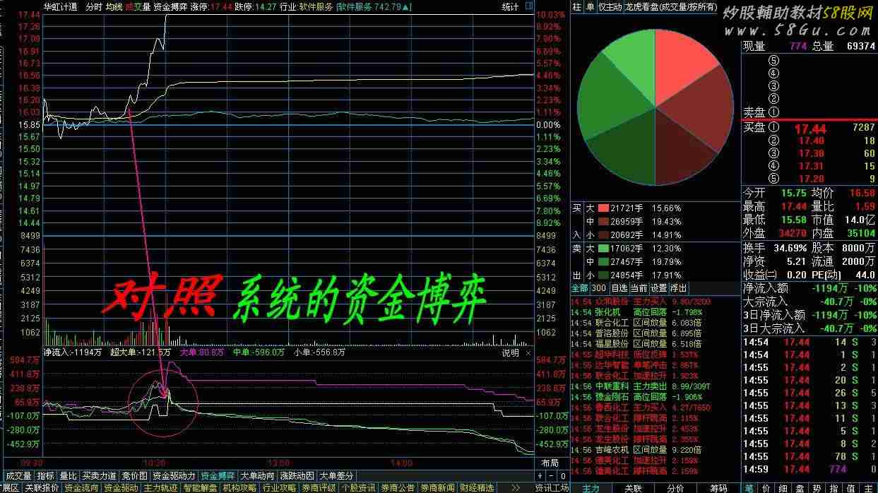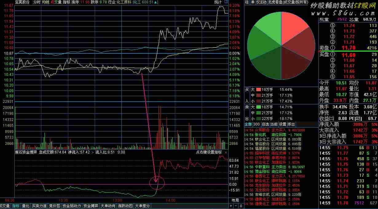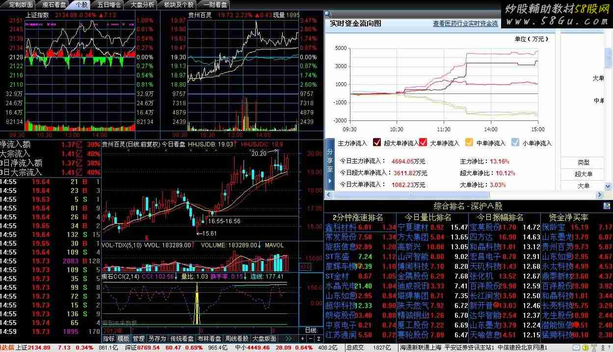 流水贴二:分时资金博弈(加指标及看盘版面)公式不成熟,不过比照系统自带的"资金博弈"来看,比较一目了然. 现在需要考虑的是,盘中如何预警出: "流入比"快速上升的股票,而不是按涨序排名,因为分时不同于日线指标排序的排名. 日分钟内的操作属于超级短线,不论是版面还是此类指标,都是追涨杀跌.如何提高成功率,是盘面盘感及操盘高低的问题.