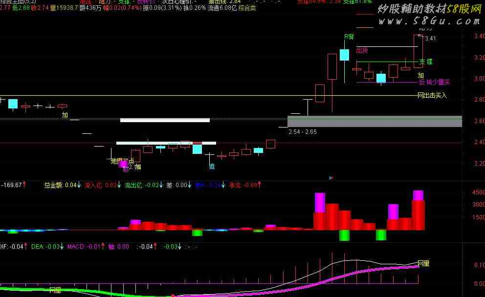 网B:=EXPMA(CLOSE,33),COLORFF00FF,LINETHICK3;