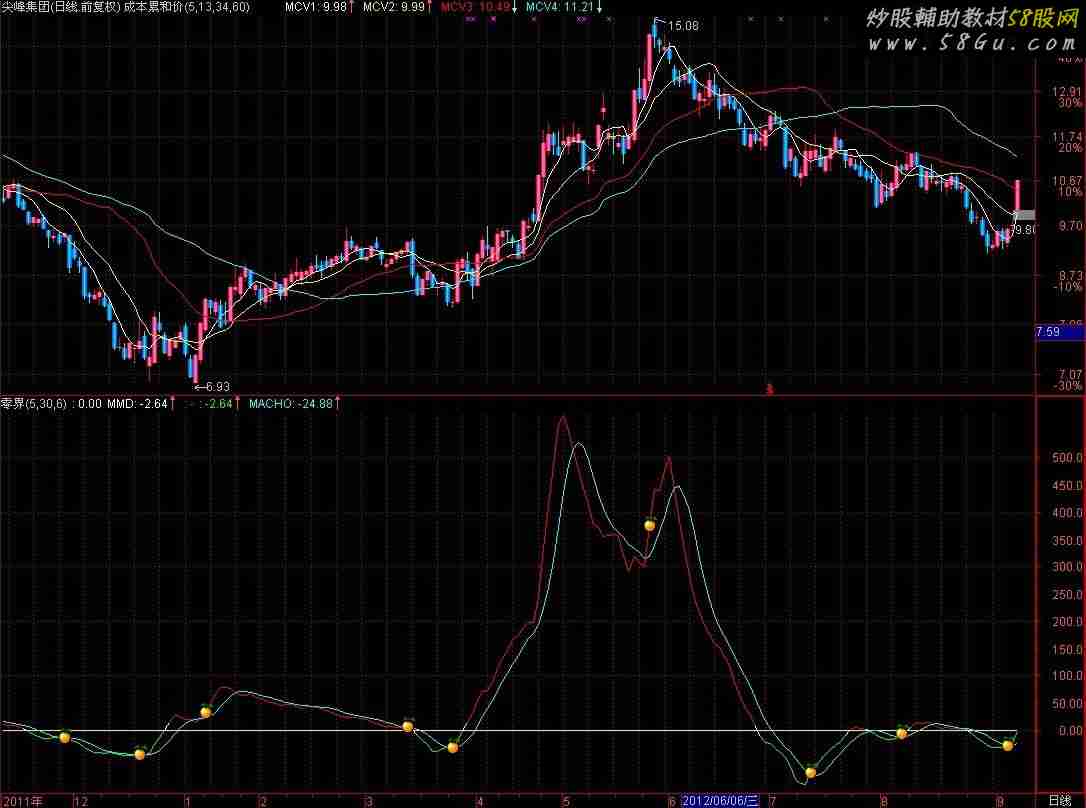 说明:特别关注0界限,买点可以在0线以下,但指标一旦上穿0线则极大概率意味着涨势开始。指标观察股价走势遵循的是一个概率事件,本非百分之百。特此提示!
