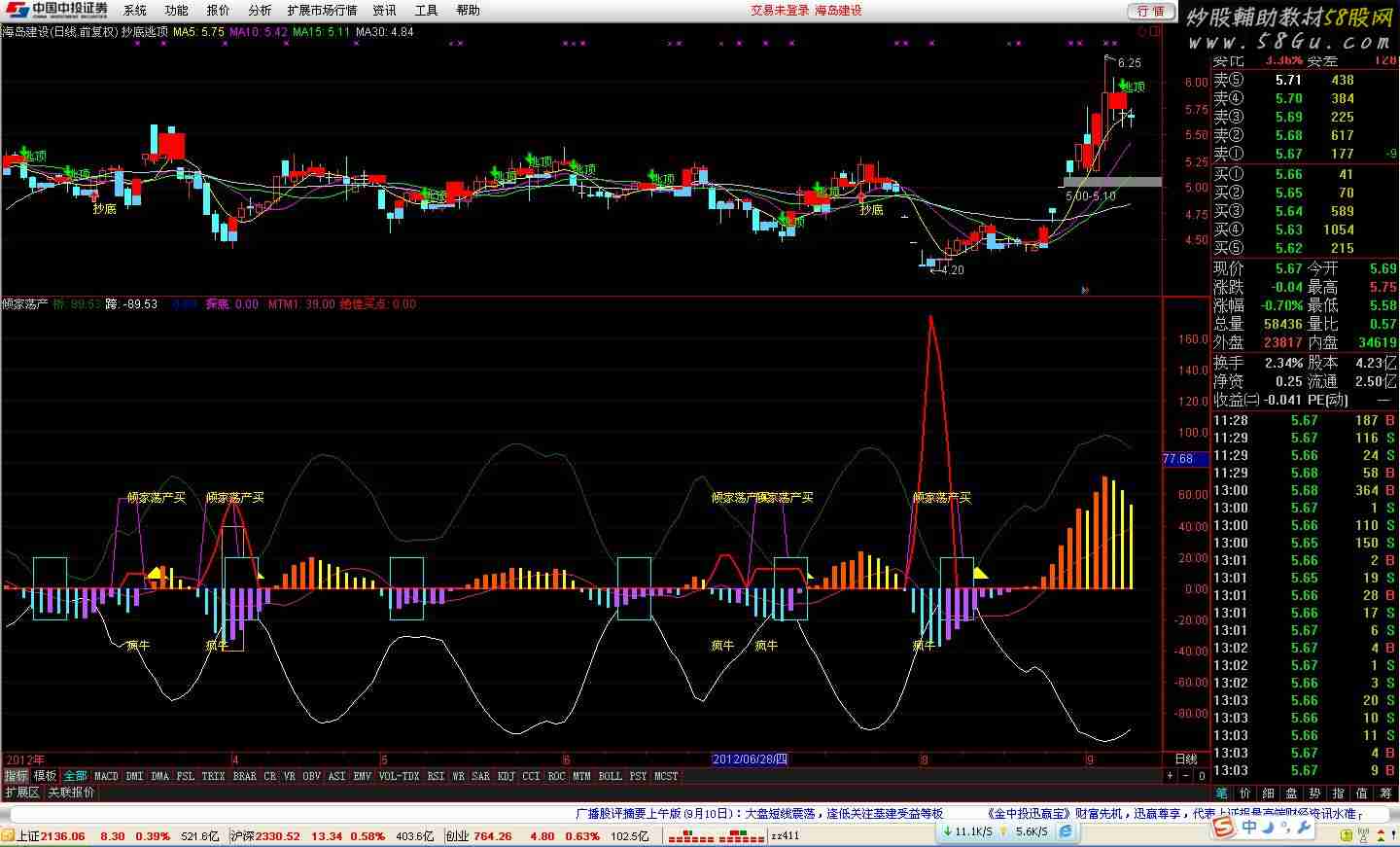 {DRAWTEXT(CROSS(绝佳买点,2.40000) ,-55,'疯牛1'),COLORFFFFCC,LINETHICK3 ; };