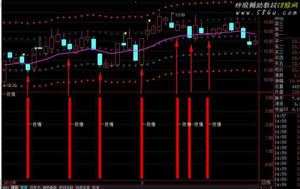 本人常用的一夜情公式,今买明卖,可以做到股池里观察,胜率高,今天尾盘介入,第二天可以选择冲高出局,记住,无论亏赚都要出局。喜欢做股池的朋友们,可以把公式做个尾盘股池介入法。 话不多说,自己下载慢慢研究,上图上源码。§LC:=REF(CLOSE,1);GLS:=SMA(MAX(CLOSE-LC,0),2,1)/SMA(ABS(CLOSE-LC),2,1)*100,COLORWHITE,LINETHICK2;YS:=45,COLORMAGENTA;PP:=GLS<YS AND REF(GLS,1)>YS ;ZT:=IF(REF(C,1)*1.1-C<0.01 ,1,0);HH:=COUNT(ZT,13)>=1;BT:=REF(PP,1) AND HH; STICKLINE(BT,0,3,2,0),COLOR000088; STICKLINE(BT,0,3,1,0),COLOR0000CC; STICKLINE(BT,0,3,0.22,0),COLOR0000FF; DRAWTEXT(BT,2,'一夜情'),COLORYELLOW; |