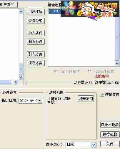 HAN:=DATE<1511230; MA13:=MA(C,13),COLORWHITE; MA34:=MA(C,34),COLORYELLOW; MA55:=MA(C,55),COLORRED; YY1:=O<MA13 AND C>MA13; YY2:=O<MA34 AND C>MA34; YY3:=O<MA55 AND C>MA55; YY4:=C/O>=1.05; YY5:=V>HHV(H,10); YY6:=MA13>=REF(MA13,1); YY:=YY1 AND YY2 AND YY3 AND YY4 AND YY5 AND YY6; STICKLINE(YY,8,80,0.4,0)*HAN,COLOR00FFFF;