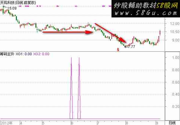主力持仓:=EMA(100*(CLOSE-LLV(LOW,34))/(HHV(HIGH,34)-LLV(LOW,34)),3); 主筹:=WINNER(C)*100,NODRAW; 散筹:=(WINNER(C*1.1)-WINNER(C*0.9))*100; WR:=100*(HHV(HIGH,90)-CLOSE)/(HHV(HIGH,90)-LLV(LOW,90)); XG1:CROSS(主力持仓,散筹) AND CROSS(80,WR); XG2:CROSS(主力持仓,50) AND CROSS(80,WR);