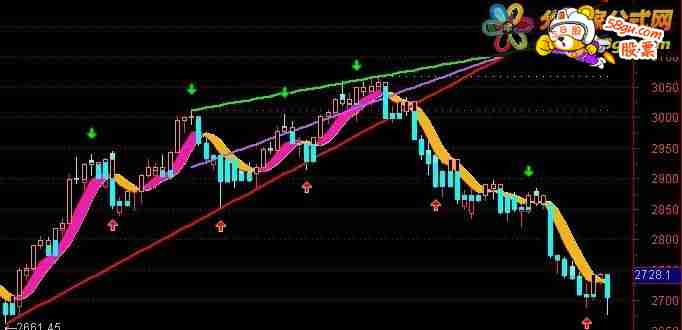 出现粉红色彩带进场,黄色出场,配合红,绿箭头操作,严格按要求操作,操作好每个波段,永远必胜!