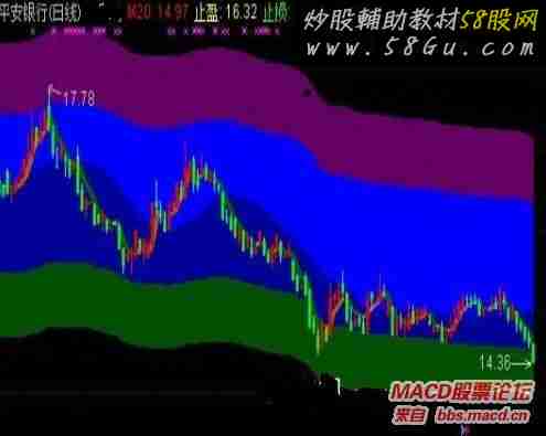 M20:MA(C,20),COLOR0000FF,DOTLINE;{买卖分水岭} {乖离止盈止损} 乖离20:=ABS((2*C+H+L)/4-M20)/M20; 乖离DM:=DMA(CLOSE,乖离20); 止盈:乖离DM*1.06,COLOR00FFFF,LINETHICK1;{20天均线乖离+6%} 止损:乖离DM*0.94,COLOR00FF00,LINETHICK1;{20天均线乖离-6%} DRAWBAND(止盈,RGB(0,0,255),M20,RGB(0,0,255)); DRAWBAND(M20,RGB(0,0,155),止损,RGB(0,0,155)); DRAWBAND(止盈,RGB(100,0,100),止盈*1.05,RGB(100,0,100)); DRAWBAND(止损,RGB(0,80,0),止损*0.95,RGB(0,180,0)); {成本3} Y5:CYC(3),COLORFFFFFF,LINETHICK1; DRAWBAND(Y5,RGB(155,100,0),REF(Y5,1),RGB(0,100,0)); {K线} STICKLINE(CLOSE>OPEN OR CLOSE=OPEN AND CLOSE>REF(CLOSE,1),LOW,HIGH,0.0,0),COLORRED; STICKLINE(CLOSE<OPEN OR CLOSE=OPEN AND CLOSE<=REF(CLOSE,1),LOW,HIGH,0.0,0),COLORCYAN; STICKLINE(OPEN>=CLOSE ,CLOSE ,OPEN,3,0 ),COLOR008800; STICKLINE(OPEN>=CLOSE ,CLOSE ,OPEN,2,0 ),COLOR00AA00; STICKLINE(OPEN>=CLOSE ,CLOSE ,OPEN,1,0 ),COLOR00DD00; STICKLINE(OPEN>=CLOSE ,CLOSE ,OPEN,0,0 ),COLOR00FF00; STICKLINE(CLOSE>OPEN,CLOSE,OPEN,3,0) ,COLOR000088; STICKLINE(CLOSE>OPEN,CLOSE,OPEN,2,0) ,COLOR0000AA; STICKLINE(CLOSE>OPEN,CLOSE,OPEN,1,0) ,COLOR0000DD; STICKLINE(CLOSE>OPEN,CLOSE,OPEN,0,0) ,COLOR0000FF; |