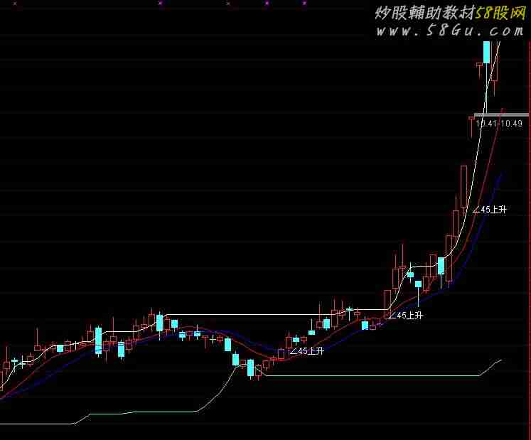 A8:MA(CLOSE,8),COLOR0000FF; A12:MA(CLOSE,13),COLORBLUE; X1:=(C+L+H)/3; BB13:=ATAN(EMA(X1,13)-REF(EMA(X1,13),1))*3.1416*10; EMA8:=EMA(C,8);DRAWTEXT(FILTER(BB13>1 AND EMA(X1,13)>REF(EMA(X1,8),1),10), EMA8,'∠45上升'),COLORWHITE; 压:MA(REF(HHV(C,30),1),2),COLOR9DFFFF; 支:MA(REF(LLV(C,30),1),2),COLORABFF46; |