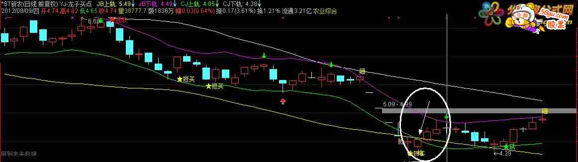 进入本帖的童鞋恭喜你们没被未来吓到,虽然主图有未来,但确实挺好用的,适合做波段,这是航海家指标通达信版本,并非原创,把指标的加密特别版了,源码奉上,与小散交流,共同进步,如有雷同实属巧合(本人没见有雷同的)。 VAR1:=((((HHV((((EMA(DCLOSE,12)-EMA(DCLOSE,26))-(EMA((EMA(DCLOSE,12)-EMA(DCLOSE,26)),9)))*2),4)<0) AND ((((EMA(DCLOSE,12)-EMA(DCLOSE,26))-(EMA((EMA(DCLOSE,12)-EMA(DCLOSE,26)),9)))*2)>REF((((EMA(DCLOSE,12)-EMA(DCLOSE,26))-(EMA((EMA(DCLOSE,12)-EMA(DCLOSE,26)),9)))*2),1))) AND (REF((((EMA(DCLOSE,12)-EMA(DCLOSE,26))-(EMA((EMA(DCLOSE,12)-EMA(DCLOSE,26)),9)))*2),1)<REF((((EMA(DCLOSE,12)-EMA(DCLOSE,26))-(EMA((EMA(DCLOSE,12)-EMA(DCLOSE,26)),9)))*2),2))) AND (REF((((EMA(DCLOSE,12)-EMA(DCLOSE,26))-(EMA((EMA(DCLOSE,12)-EMA(DCLOSE,26)),9)))*2),2)<REF((((EMA(DCLOSE,12)-EMA(DCLOSE,26))-(EMA((EMA(DCLOSE,12)-EMA(DCLOSE,26)),9)))*2),3)));DRAWTEXT(VAR1,L*0.98,'★短买'),COLORYELLOW;LY:=10;BL:=40; CJQS:=XMA(CLOSE,LY);JBQS:=XMA(CLOSE,BL);N:=REF(JBQS,BL/2+1-CURRBARSCOUNT)/REF(JBQS,BL/2+2-CURRBARSCOUNT);M:=REF(CJQS,LY/2+1-CURRBARSCOUNT)/REF(CJQS,LY/2+2-CURRBARSCOUNT);JB上轨:IF(CURRBARSCOUNT>BL/2,JBQS*1.1,REF(JBQS,BL/2+1-CURRBARSCOUNT)*POW(N,BL/2+1-CURRBARSCOUNT)*1.1);JB下轨:IF(CURRBARSCOUNT>BL/2,JBQS*0.9,REF(JBQS,BL/2+1-CURRBARSCOUNT)*POW(N,BL/2+1-CURRBARSCOUNT)*0.9);CJ上轨:IF(CURRBARSCOUNT>LY/2,CJQS*1.05,REF(CJQS,LY/2+1-CURRBARSCOUNT)*POW(M,LY/2+1-CURRBARSCOUNT)*1.05);CJ下轨:IF(CURRBARSCOUNT>LY/2,CJQS*0.95,REF(CJQS,LY/2+1-CURRBARSCOUNT)*POW(M,LY/2+1-CURRBARSCOUNT)*0.95); DRAWTEXT(O<=CJ下轨,(L * 0.98),'抢'),COLORYELLOW;DRAWTEXT(CROSS(H,CJ上轨),(H * 1.01),'砸'),COLORYELLOW; DRAWTEXT(CROSS(ZIG(3,13),REF(ZIG(3,13),1)),LOW*1.001,'★底'),COLORGREEN;DRAWTEXT(CROSS(REF(ZIG(3,13),1),ZIG(3,13)),HIGH*1,'★逃顶'), COLORRED;