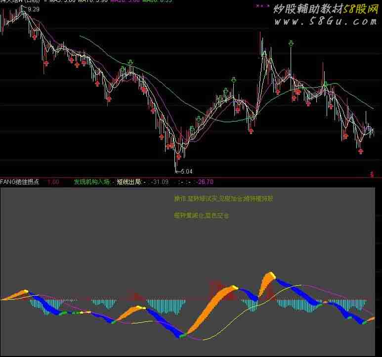 STICKLINE(C>0,-100,200,8,0),COLOR444444;N:=1.5;M:=3;P:=64;DIFF:=EMA((EMA(CLOSE,N*12)-EMA(CLOSE,N*26))/EMA(CLOSE,N*26)*1000,M);DEA:=EMA(DIFF,N*9),COLOR000088;MACD:=2*(DIFF-DEA);MACDX:=MACD;MACDO:=EMA(MACD,5),COLORFF77FF;DIFFO:=EMA(DEA,P)*1.8;B:=MACD-REF(MACD,1);(MACD>0 AND B>0,0,MACD,0,1),COLOR0000CD;STICKLINE(MACD>0 AND B<0,0,MACD,0,0),COLOR0000CD;STICKLINE(MACD<0 AND B>0,0,MACD,0,1),COLORCYAN;STICKLINE(MACD<0 AND B<0,0,MACD,0,0),COLORCYAN;STICKLINE(DIFF>DEA,DIFF,DEA,4,0),COLOR0089FF;STICKLINE(DIFF<DEA,DIFF,DEA,4,0),COLORBLUE;发现机构入场:IF(DIFF>=REF(DIFF,1) AND DEA<REF(DEA,1),DIFF,DRAWNULL),COLOR00C500,LINETHICK4;短线出局:IF(DIFF<REF(DIFF,1) AND DEA>REF(DEA,1),DIFF,DRAWNULL),COLORYELLOW,LINETHICK4;IF(DIFF>=REF(DIFF,1) AND DEA>REF(DEA,1),DIFF,DRAWNULL),COLORGRAY;IF(DIFF<REF(DIFF,1) AND DEA<REF(DEA,1),DIFF,DRAWNULL),COLORBLUE;IF(DIFFO>=REF(DIFFO,1),DIFFO,DRAWNULL),COLORYELLOW;IF(DIFFO=REF(DIFFO,1),DIFFO,DRAWNULL),COLORYELLOW;IF(DIFFO<REF(DIFFO,1),DIFFO,DRAWNULL),COLORMAGENTA;DRAWTEXT(C=C AND CURRBARSCOUNT=150,180,'操作:蓝转绿试买;见橙加仓;维持橙持股'),COLOR008987;DRAWTEXT(C=C AND CURRBARSCOUNT=150,150,'橙转黄减仓;蓝色空仓'),COLOR008987; |