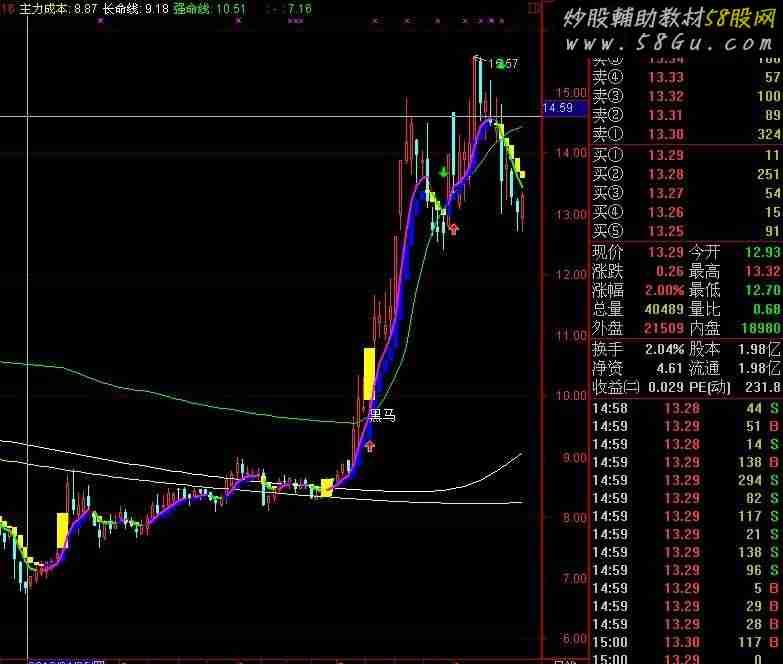 用法: 1、大家可以可翻阅历史牛股,可以说几乎所以牛股的主升行情都是在股价上穿”主力成本‘线后开始。 2、当股价上穿主力成本线后,多空线上穿强命线,可择机买入。 以下是源码: