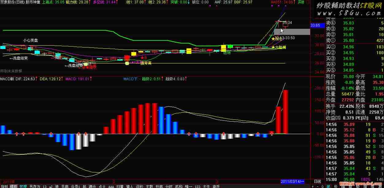 VC:=(REF(C,2)*REF(V,2)+REF(C,1)*REF(V,1)+C*V)/(V+REF(V,1)+REF(V,2)); SQX:=(VC-MA(VC,13))*100; DIF:MA(SQX,5),COLORWHITE; DEA:EMA(DIF,5),COLORYELLOW; MACD:(DIF-DEA)*2,COLORSTICK; JCCOUNT:=COUNT(CROSS(DIF,DEA),BARSLAST(DEA>=0)); MACD1:=MACD; MACD2:=REF(MACD,1); MACD下:IF(MACD1<REF(MACD1,1),MACD1,DRAWNULL), STICK,COLORFF9900,LINETHICK1; 趋势2:EMA(EMA(EMA(C,5)-REF(EMA(C,5),1),5),5); 趋势4:EMA(EMA(EMA(C,3)-REF(EMA(C,3),1),4),4); DRAWICON(CROSS(趋势4,趋势2),趋势2,1); DRAWICON(CROSS(趋势4,REF(趋势4,1))AND 趋势4<趋势2,趋势2,1); STICKLINE(MACD1>MACD2 AND MACD1>0,0,MACD1,3.2,0),COLOR000055; STICKLINE(MACD1>MACD2 AND MACD1>0,0,MACD1,2.7,0),COLOR000077; STICKLINE(MACD1>MACD2 AND MACD1>0,0,MACD1,2.1,0),COLOR000099; STICKLINE(MACD1>MACD2 AND MACD1>0,0,MACD1,1.5,0),COLOR0000BB; STICKLINE(MACD1>MACD2 AND MACD1>0,0,MACD1,0.9,0),COLOR0000DD; STICKLINE(MACD1>MACD2 AND MACD1>0,0,MACD1,0.3,0),COLOR0000FF; STICKLINE(MACD1>MACD2 AND MACD1<0,0,MACD1,3.2,0),COLOR555555; STICKLINE(MACD1>MACD2 AND MACD1<0,0,MACD1,2.7,0),COLOR777777; STICKLINE(MACD1>MACD2 AND MACD1<0,0,MACD1,2.1,0),COLOR999999; STICKLINE(MACD1>MACD2 AND MACD1<0,0,MACD1,1.5,0),COLORBBBBBB; STICKLINE(MACD1>MACD2 AND MACD1<0,0,MACD1,0.9,0),COLORDDDDDD; STICKLINE(MACD1>MACD2 AND MACD1<0,0,MACD1,0.3,0),COLORFFFFFF; STICKLINE(MACD1<MACD2,0,MACD1,3.2,0),COLORB20000; STICKLINE(MACD1<MACD2,0,MACD1,2.7,0),COLOREC0000; STICKLINE(MACD1<MACD2,0,MACD1,2.1,0),COLORFF4600; STICKLINE(MACD1<MACD2,0,MACD1,1.5,0),COLORFF6300; STICKLINE(MACD1<MACD2,0,MACD1,0.9,0),COLORFF8B00; STICKLINE(MACD1<MACD2,0,MACD1,0.3,0),COLORFFAB00; STICKLINE(MACD1>=0 OR MACD1<=0,0,0,50,1),COLORWHITE; |