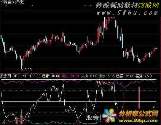 REFLINE: 0, 25, 75, 100; VAR1:=IF(MA(CLOSE,88),1,0); VAR2:=1/WINNER(CLOSE); VAR3:=100-ABS((CLOSE-MA(CLOSE,13))/MA(CLOSE,13)*100); 趋势: WINNER(AMOUNT/VOL/100)*100*VAR1; 高山: (100-ABS((CLOSE-MA(CLOSE,15))/MA(CLOSE,15)*100))*VAR1; 火山: IF(VAR2>5,IF(VAR2<100,VAR2,VAR3-10),0)*VAR1, COLORSTICK; 流水: ABS((COST(50)-CLOSE)/CLOSE*100)*VAR1; 趋强: 25, POINTDOT; 强势: 75, POINTDOT; 中位线: 50 ; |