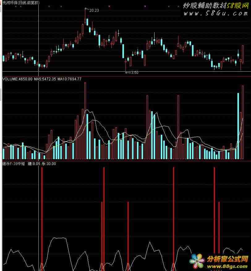 RSV:=(((CLOSE - LLV(LOW,9)) / (HHV(HIGH,9) - LLV(LOW,9))) * 100); K:=SMA(RSV,3,1); D:=SMA(K,3,1); J:=3*K-2*D; X:=LLV(J,2)=LLV(J,8); RE:=CROSS(J,REF(J+0.01,1)) AND X AND J<5; STICKLINE(RE,0,300,1,0),COLOR0000FF; CSS:=((CLOSE-LLV(LOW,8))/(HHV(HIGH,8)-LLV(LOW,8))*100); HH:=CROSS(20,EMA(CSS,3)); CE:=REF(HH,1); AA:=REF(CLOSE,1); BBB:=SMA(MAX(CLOSE-AA,0),5,1)/SMA(ABS(CLOSE-AA),5,1)*1000; HHH:=BBB-LLV(BBB,10); SS:=(MA(HHH,2)*3+HHH*13)/16; 建:IF(SS>13,MA(SS,2),SS)/6; 乐:IF(CROSS(建,1) AND (建<30),30,1); STICKLINE(乐=30,0,200,1,0),COLOR0000FF;  |