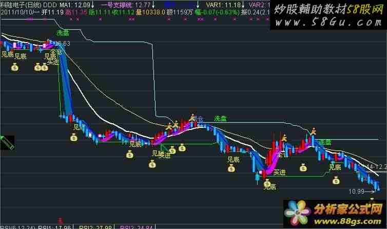 回归斜率线A:=EMA(SLOPE(C,4)*20+C,42);MA1:EMA(CLOSE,13)COLORWHITE,LINETHICK2; 经典RL:=(CLOSE-LLV(LOW,9))/(HHV(HIGH,9)-LLV(LOW,9))*100; 经典K:=SMA(经典RL,3,1); 经典D:=SMA(经典K,3,1); 经典J:=3*经典K-2*经典D; MAHL1:=100*((EMA((H+L)/2,3)-LLV(EMA((H+L)/2,5),30)-(EMA(H,20)-EMA(L,20))) /(LLV(EMA((H+L)/2,5),30)-(EMA(H,20)-EMA(L,20)))); MAHL2:=IF(EMA(C,2)>回归斜率线A AND MAHL1>0,EMA(C,3),LLV(EMA((H+L)/2,5),30));{A} MAHL3:=IF(EMA(C,2)>回归斜率线A AND MAHL1>0,LLV(EMA((H+L)/2,5),30),EMA(C,5));{A} 回归斜率带:DRAWBAND(回归斜率线A,RGB(235,0,230),REF(回归斜率线A,2),RGB(0,104,154)); 上线:=SMA(C,6.5,1); 一号支撑线:SMA(C,14.5,1); 上线1:=SMA(C,3,1); 一号支撑线1:=SMA(C,8,1); 上线2:=SMA(C,3.5,1); DRAWTEXT(CROSS(一号支撑线1,上线1),H*1.08,'洗盘'),COLOR00FF00; BBI:=(MA(CLOSE,3)+MA(CLOSE,6)+MA(CLOSE,12)+MA(CLOSE,25))/4; UPR:=BBI+3*STD(BBI,13),LINETHICK2; DWN:=BBI-3*STD(BBI,13); 安全:=MA(CLOSE,55),LINETHICK2; LC:=REF(CLOSE,1); RSI:=SMA(MAX(CLOSE-LC,0),6,1)/SMA(ABS(CLOSE-LC),6,1)*100; DRAWTEXT( CROSS(82,RSI) AND CLOSE<上线1 , HIGH*1.04,'减仓') ,COLORFF9966,LINETHICK2; A7:=(2*C+H+L)/4; 操作:MA(A7,5),COLORBLUE,LINETHICK2; 操作1:=MA(A7,5)*1.03,LINETHICK2; 操作2:=MA(A7,5)*0.97,LINETHICK2; DRAWTEXT( CROSS(上线1,上线) AND 上线1>操作,LOW *0.92,'买进' ),COLORYELLOW; VAR1:LLV(A7,21); VAR2:HHV(A7,30); DRAWTEXT( CROSS(上线1,操作) AND 上线1<一号支撑线 AND 上线1<一号支撑线1 AND 上线1<上线 AND CLOSE>VAR1,LOW *0.98,'见底' ),COLORYELLOW; YCX:=操作>=REF(操作,1); H1:=MAX(MAX(上线,一号支撑线1),一号支撑线); L1:=MIN(MIN(上线,一号支撑线1),一号支撑线); DRAWTEXT(CROSS(上线1,一号支撑线1) AND 上线1>操作 ,LOW *0.98,'全仓' ),COLORYELLOW; SK:=EMA((A7-VAR1)/(VAR2-VAR1)*100,7); SD:=EMA(0.667*REF(SK,1)+0.333*SK,5); M1:=1000*操作/一号支撑线<=1015 AND 1000*操作/一号支撑线>=975; M2:=1000*一号支撑线1/一号支撑线<=1020 AND 一号支撑线1/一号支撑线>=980; M3:=1000*上线/一号支撑线<=1015 AND 上线/一号支撑线>=985; DRAWTEXT(IF(COUNT(CLOSE<REF(CLOSE,1),13)/13>6/10 AND COUNT(SK>SD,6) AND REF(LOW,5)=LLV(LOW,120) AND REF(CLOSE>=OPEN,4) AND REF(CLOSE>OPEN,3) AND REF(CLOSE>OPEN,2) AND REF(OPEN>CLOSE,1) AND OPEN>REF(CLOSE,1),1,0),LOW*0.94,'买进') ,COLORYELLOW; D:=MA(CLOSE,89)-MA(CLOSE,10)/3; DRAWTEXT(IF(CLOSE<D AND VOL/240>MA(VOL,5)/240 AND CLOSE>REF(CLOSE,1)*1.08 AND CLOSE<MA(CLOSE,13)*1.3,1,0),LOW*0.88,'抄底'),COLORBROWN; RSV:=(CLOSE-LLV(LOW,25))/(HHV(HIGH,25)-LLV(LOW,25))*100; K:=SMA(RSV,3,1); D1:=SMA(K,3,1); J:=3*K-2*D1; VAR3:=(2*CLOSE+HIGH+LOW)/3;{可将3该为4,信号少点} VAR4:=EMA(EMA(EMA(VAR3,4),4),4);{可将3该为4,信号少点} E:=(VAR4-REF(VAR4,1))/REF(VAR4,1)*100; F:=MA(E,3)+0.03; G:=MA(E,1); DRAWICON(CROSS(F,G) AND J>65,HIGH*1.02,15),COLORGREEN; DRAWICON(CROSS(G,F),LOW *0.9,9),COLORYELLOW; DRAWTEXT(CLOSE>OPEN AND H1<C AND O<L1 AND YCX AND CROSS(上线1,操作) AND LOW>VAR1 AND 上线1>一号支撑线 AND J<90,LOW *0.9,'主升' ),COLORRED; DRAWTEXT( CROSS(上线1,操作) AND M1 AND M2 AND M3,LOW *0.94,'买进' ),COLORYELLOW; DRAWTEXT(CLOSE>OPEN AND 上线>一号支撑线1 AND 一号支撑线1>一号支撑线 AND CLOSE>MA(CLOSE,一号支撑线) AND 操作>=REF(CLOSE,操作) AND CROSS(上线1,操作) AND LOW>VAR1 AND J<90,LOW *0.9,'主升' ),COLORRED; DRAWTEXT(CLOSE>OPEN AND 操作>上线 AND 上线>一号支撑线1 AND 一号支撑线1>一号支撑线 AND CROSS(上线1,操作) AND LOW>VAR1 AND J<90,LOW *0.86,'回踩买进' ),COLORRED; DRAWTEXT(CLOSE>OPEN AND CROSS(上线,一号支撑线) AND LOW>VAR1 AND J<90,LOW *0.86,'回踩买进' ),COLORRED; STICKLINE(CLOSE> REF(CLOSE,1) ,HIGH,LOW,0,0 ),COLORRED; STICKLINE(C<O AND C>REF(C,1),C,O,3,0),COLORFFCC00; STICKLINE(CLOSE> REF(CLOSE,1) AND C>O ,OPEN,CLOSE,3,0 ),COLOR000055;{红K}; STICKLINE(CLOSE> REF(CLOSE,1) AND C>O ,OPEN,CLOSE,2.7,0 ),COLOR000077;{红K}; STICKLINE(CLOSE> REF(CLOSE,1) AND C>O ,OPEN,CLOSE,2.1,0 ),COLOR000099; STICKLINE(CLOSE> REF(CLOSE,1) ,OPEN,CLOSE,1.5,0 ),COLOR0000BB; STICKLINE(CLOSE> REF(CLOSE,1) ,OPEN,CLOSE,0.9,0 ),COLOR0000DD; STICKLINE(CLOSE> REF(CLOSE,1) ,OPEN,CLOSE,0.3,0 ),COLOR0000FF; STICKLINE(CLOSE= REF(CLOSE,1) ,H,L,3,1 ),COLOR999999; STICKLINE(CLOSE= REF(CLOSE,1) ,HIGH,LOW,0,0 ),COLORWHITE; STICKLINE(CLOSE= REF(CLOSE,1) ,OPEN,CLOSE,3,0 ),COLOR555555; STICKLINE(CLOSE= REF(CLOSE,1) ,OPEN,CLOSE,2.7,0 ),COLOR777777; STICKLINE(CLOSE= REF(CLOSE,1) ,OPEN,CLOSE,2.1,0 ),COLOR999999; STICKLINE(CLOSE= REF(CLOSE,1) ,OPEN,CLOSE,1.5,0 ),COLORBBBBBB; STICKLINE(CLOSE= REF(CLOSE,1) ,OPEN,CLOSE,0.9,0 ),COLORDDDDDD; STICKLINE(CLOSE= REF(CLOSE,1) ,OPEN,CLOSE,0.3,0 ),COLORFFFFFF; STICKLINE(CLOSE< REF(CLOSE,1) ,HIGH,LOW,0,1 ),COLORCYAN; STICKLINE(C<REF(C,1) AND C>O,C,O,3,0),COLORFFCC00; STICKLINE(C<REF(C,1) AND C<O ,OPEN,CLOSE,3,0 ),COLOR990000; STICKLINE(C<REF(C,1) AND C<O ,OPEN,CLOSE,2.7,0 ),COLORCC0000; STICKLINE(CLOSE< REF(C,1) ,OPEN,CLOSE,2.1,0 ),COLORFF4400; STICKLINE(CLOSE< REF(C,1) ,OPEN,CLOSE,1.5,0 ),COLORFF8800; STICKLINE(CLOSE< REF(C,1) ,OPEN,CLOSE,0.9,0 ),COLORFFCC00; STICKLINE(CROSS(J,D1) AND J<70,CLOSE,OPEN,3.2,0),COLORBB00FF; STICKLINE(CROSS(J,D1) AND J<70,CLOSE,OPEN,2.7,0),COLORFF33FF; STICKLINE(CROSS(J,D1) AND J<70,CLOSE,OPEN,2.1,0), COLORFF66FF; STICKLINE(CROSS(J,D1) AND J<70,CLOSE,OPEN,1.5,0),COLORFF99FF; STICKLINE(CROSS(J,D1) AND J<70,CLOSE,OPEN,0.9,0),COLORFFBBFF; STICKLINE(CROSS(J,D1) AND J<70,CLOSE,OPEN,0.3,0),COLORFFDDFF; |