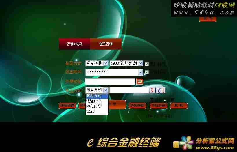 感谢论坛的两位老师及短线老师,给了很漂亮的启却是画面,但在选择安全方式上有点小问题,后面一位老师解决了这个问题,但不能用上漂亮的画面,本人组合了两位老师的文件,做到了即漂亮又好用,所有安全选择方式都可以用,再次感谢两位老师,上图说话 附件解压后,请先备份原来的文件,改个名字就可以了,再把压缩包中的文件解压到短线老师的平安版就可以了 {点击看本软件截图: 58股网 http://www.58gu.com整理} |