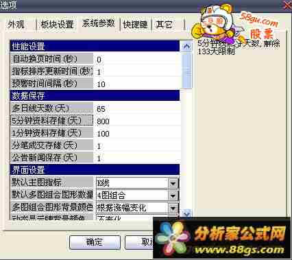 大智慧(V6.2.10.629)解除分钟存储限制+暴力登录(屏蔽升级) 许多朋友希望突破大智慧5分钟K线最多只能保存133天,1分钟K线最多只能保存52天限制,习作了一个并添加了暴力登录,屏蔽了程序升级,希望方便大家使用。将主程序解压到大智慧根目录下运行即可,然后点击查看——选项——系统参数进行设置,改为你需要的天数。注意: 1、由于要重新建立保存5分钟K线和1分钟K线的数据文件,所以第一次启动时时间会比较长,请耐心等待。并且在这个过程尽量不要进行其它操作,以免造成死机。2、由于分钟数据巨大,请根据需要选择存储天数,以免浪费硬盘空间。3、对电脑运行缓慢或不使用太多分钟数据的朋友,不建议下载使用本程序。4、使用本程序后请不要改用其它没有扩展分钟存储天数的程序,否则,下次使用时又要花较长时间重建数据文件。 {点击看本软件截图: 58股网 http://www.58gu.com整理} |