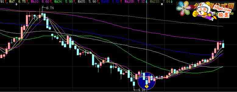 sum(ZF>9.9,5)=1 AND C<MA(C,10) AND MA(c,5)<MA(c,34) AND MA(C,5)>MA(c,10) AND c>l AND MA(C,34)<MA(c,233);