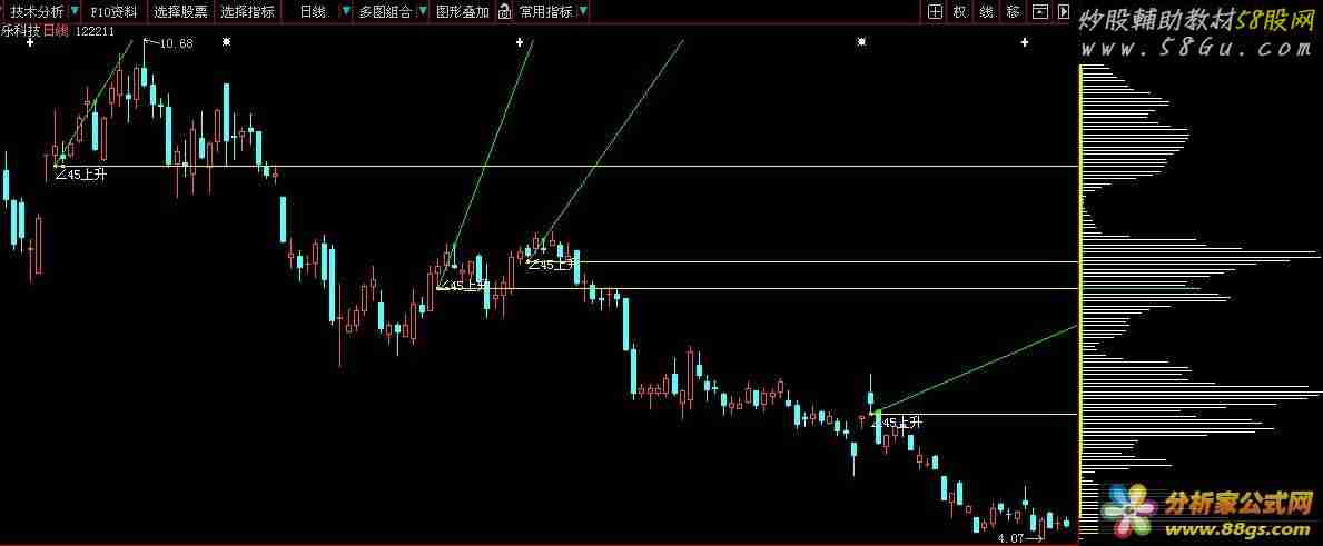 本人用45角度和筹码连在一起分析,发现在庄家拉升中,散户跟进很多,在这个位置大部分筹码应该是散户的.