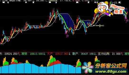 A:=v*100/capital; MA(A,120),COLOR996633,POINTDOT; MA(A,2),COLORYELLOW,POINTDOT; 主力:MA(A,9),COLORGREEN,POINTDOT; 游资:MA(A,4),COLOR3399FF,POINTDOT; 大户:MA(A,17),COLORRED,POINTDOT; 散户:MA(A,34),COLORF2E9E7,POINTDOT; 警戒线:MA(A,180),COLORcyan; STICKLINE(MA(A,120)>0,0,MA(A,120),6,0),COLOR996633; STICKLINE(MA(A,2)>0,0,MA(A,2),6,0),COLORYELLOW; STICKLINE(游资>0,0,游资,6,0),COLOR3399FF; STICKLINE(主力>0,0,主力,6,0),COLORGREEN; STICKLINE(大户>0,0,大户,6,0),COLORRED; STICKLINE(散户>0,0,散户,6,0),COLORF2E9E7; DRAWGBKLAST(v>1,STRIP(RGB(75,0,130),RGB(0,0,0),0)); |