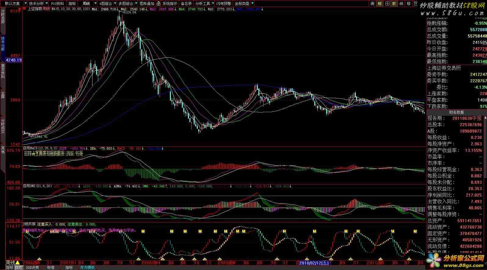 使用方法: 自用MACD是看DIFF线,变成红色好,绿色不好自用MACD最好柱子也是红色是安全在日线看自用MACD有个大线柱,那是周线MACD的线柱,只是表现在日线里小线柱是日线MACD柱子按照作者的说明,在日线里看自用MACD大线柱也就是周线线柱(在日线里看)是红色是,看DIFF线向上变成红色而买入时机周线柱子不好就是趋势不好绿色为不好 他只是把周线柱子弄倒日线里看而已,和周线柱子一样 周线柱子一周一根,在日线里是5天一根自用DMI也是看那个飘带,红色好,绿色不好J线共振指标是,黄色绿色为长线,红色蓝色为短线,长线黄色好绿色不好,短线红色好蓝色不好,一块红色和黄色比较安全看周线 3个指标都显示好安全点,自用MACD的DIFF线向上变成红色,自用DMI向上飘带变红,J线共振向上变成黄色和红色,代表长线和短线趋势变好!