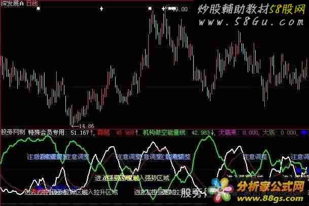 机构做空能量线: SMA(Var12,3,1),colorgreen,linethick2; 大底来: 0,POINTDOT; 大底: 0,POINTDOT; DRAWTEXT(cross(跨越,机构做空能量线) ,大底+40,'进入强势区域'),coloryellow,linethick1; DRAWTEXT(cross(特殊会员专用,跨越) ,大底+20,'进入拉升区域'),linethick1; DRAWTEXT(cross(跨越,特殊会员专用) ,大底+70,'注意调整'),COLORFFAA66,linethick1; ●注意买入点: DRAWTEXT(REF(CROSS(机构做空能量线,跨越),25) AND 机构做空能量线>1.005*跨越,跨越,'●<-注意买入点'),COLORBLUE,linethick1; ★逢低买入: DRAWTEXT(REF(CROSS(跨越,特殊会员专用),82) AND 跨越>1.3*特殊会员专用,特殊会员专用,'★<<-逢低买入'),linethick1; ★低买: DRAWTEXT(REF(CROSS(特殊会员专用,跨越),1) AND 特殊会员专用>1.3*跨越,跨越,'★低买'),COLORRED,linethick1; |