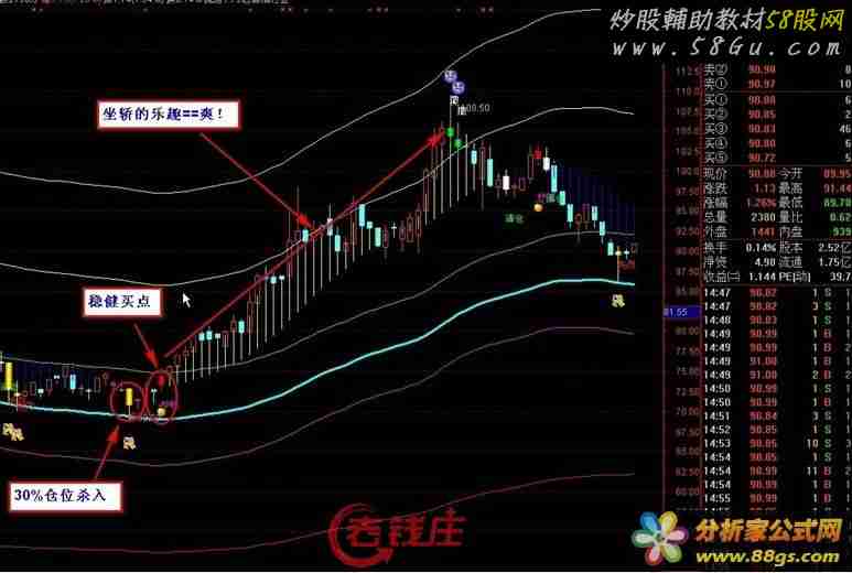 VAR2:=EMA(SLOPE(C,21)*20+C,55); VAR3:=EMA(C,3); VAR4:=(2*C+L+H)/4; VAR5:=VAR2-VAR3; 高山线:EMA(VAR4,45)*1.15; 不留线:EMA(VAR4,55)*1.3; 德水线:EMA(VAR4,40)*0.85; 般若线:EMA(VAR4,55),COLORGREEN; 若愚线:EMA(VAR4,88)*0.7,COLORRED; 信心满满:STICKLINE(VAR5>=0,VAR3,VAR2,0,0),COLORFF0000,LINETHICK1; 小心从事:STICKLINE(VAR5<0,VAR3,VAR2,0,0),LINETHICK1,COLORYELLOW; STICKLINE(CROSS(0,VAR5) ,C,O,8,0),COLOR000088; STICKLINE(CROSS(0,VAR5),C,O,5,0),COLOR0000AA; STICKLINE(CROSS(0,VAR5),C,O,3,0),COLOR0000CC; STICKLINE(CROSS(0,VAR5),C,O,1,0),COLOR0000FF; STICKLINE(CROSS(0,VAR5),L,H,0,0),COLOR0000FF; DRAWTEXT(CROSS(0,VAR5),C*0.96,'抄吧'),COLORFF00FF; DRAWICON(CROSS(0,VAR5),C*0.94,9); STICKLINE(CROSS(VAR5,0),C,O,8,0),COLORAAAAAA; STICKLINE(CROSS(VAR5,0),C,O,5,0),COLORCCCCCC; STICKLINE(CROSS(VAR5,0),C,O,3,0),COLORDDDDDD; STICKLINE(CROSS(VAR5,0),C,O,1,0),COLORFFFFFF; STICKLINE(CROSS(VAR5,0),L,H,0,0),COLORFFFFFF; DRAWTEXT(CROSS(VAR5,0),C*0.97,'清仓'),COLOR00FF00; STICKLINE(C>高山线 AND C<REF(C,1),C,O,8,0),COLOR008800; STICKLINE(C>高山线 AND C<REF(C,1),C,O,5,0),COLOR00AA00; STICKLINE(C>高山线 AND C<REF(C,1),C,O,3,0),COLOR00CC00; STICKLINE(C>高山线 AND C<REF(C,1),C,O,1,0),COLOR00FF00; STICKLINE(C>高山线 AND C<REF(C,1),L,H,0,0),COLOR00FF00; DRAWTEXT(C>高山线 AND C<REF(C,1),C*1.05,'撤'),COLORFFFFFF; DRAWICON(C>高山线 AND C<REF(C,1),C*1.07,14); 价值中枢: (般若线+德水线)/2,COLORFFFF00,LINETHICK3; VAR2A:=REF(LOW,1); VAR3A:=SMA(ABS(LOW-VAR2A),3,1)/SMA(MAX(LOW-VAR2A,0),3,1)*100; VAR4A:=EMA(VAR3A*10,3); VAR5A:=LLV(LOW,34); 先驱抄底:=MIN(LOW<=VAR5A,L); STICKLINE(先驱抄底,C,O,8,0),COLOR0066BB; STICKLINE(先驱抄底,C,O,5,0),COLOR0099CC; STICKLINE(先驱抄底,C,O,3,0),COLOR00CCEE; STICKLINE(先驱抄底,C,O,1,0),COLOR00FFFF; STICKLINE(先驱抄底,L,H,0,0),COLOR00FFFF; DRAWTEXT(先驱抄底,C*0.99,'先烈'),COLOR0000FF; DRAWICON(先驱抄底,C*0.93,12); ============================ 【选股一】 VAR2A:=REF(LOW,1); VAR3A:=SMA(ABS(LOW-VAR2A),3,1)/SMA(MAX(LOW-VAR2A,0),3,1)*100; VAR4A:=EMA(VAR3A*10,3); VAR5A:=LLV(LOW,34); 先烈:MIN(LOW<=VAR5A,L); 【选股二】 VAR2:=EMA(SLOPE(C,21)*20+C,55); VAR3:=EMA(C,3); VAR4:=(2*C+L+H)/4; VAR5:=VAR2-VAR3; 抄吧:CROSS(0,VAR5);