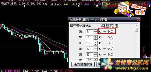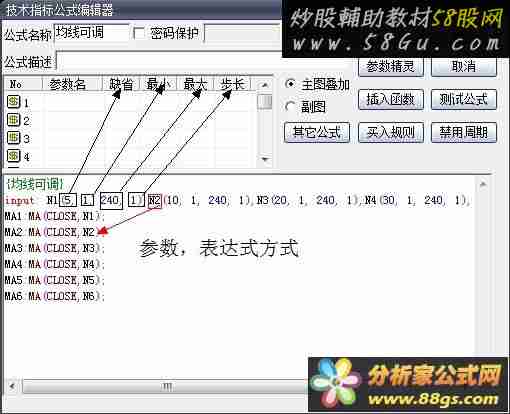 制作可自由调节黑均线系统实例均线系统是一种常用趋势型指标,它可以过滤频繁的买卖点,是一种抓*,骑*的利器,很多同学可能,不太熟悉怎么自己动手制作。 故我做这个实例,希望对大家有帮助。 ------------- 一般我们制作一个有参数的制作,第一句,就是设定参数用input函数,input:N1(10);表示N1参数缺省为10,这样这样做没有上下限,单数值调整,制作均线或者较为简单固定的可以这样快捷表达。 另一种在,input: N1(5, 1, 240, 1);表示N1参数缺省为5,最小>=1,最大<=240,步长为1。这样是设定上下限的表达方式,一般用于制作比较复杂的条件选股指标,或者参数可调区间有限的指标。 下面发个例子制作一个可随意调节的均线指标 源码: {均线可调} input: N1(5, 1, 240, 1),N2(10, 1, 240, 1),N3(20, 1, 240, 1),N4(30, 1, 240, 1),N5(60, 1, 240, 1),N6(120, 1, 240, 1); MA1:MA(CLOSE,N1); MA2:MA(CLOSE,N2); MA3:MA(CLOSE,N3); MA4:MA(CLOSE,N4); MA5:MA(CLOSE,N5); MA6:MA(CLOSE,N6); {----------------} 下面分享给大家几种我用的黑均线系统参数 A敢死队均线系统(5,24,72,200);(用于阻击涨不停翻倍大黑,配合vol使用,操作时间周期相对较长) B神奇数列均线系统(3,5,8,13,21,34,55,89,144,233)(常用到144为止,用于追踪,神秘的止跌反转点,具体的大家都知道哈哈) C主升浪均线系统(5,10,30)(配合题材阻击主升浪常见均线) D大道至简短线法则(15)(放量突破持股,跌破出局,短小精悍,大道至简) E龙头均线系统(3,7,14,38,55)(短中长兼顾,配合vol使用) F世上最牛b的均线系统(5,10,20,30,60,120)(各大股软,必配此均线,全国至少有2/3人用此均线,具有极大的市场号召力,哈哈极端化很明显。) 哈哈 祝大家9月天天骑黑,股票天天向上。 贴2个图是关于上面均线实例的操作步骤;  公式大家就不用下载了,这公式系统就有了 |