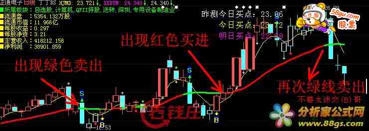DRAWTEXTREL(1,10,'■所属板块:'+BKNAME),COLORGREEN; DRAWTEXTREL(1,60,'■流通盘:'+CAPITAL/100+'万股'),COLORYELLOW; DRAWTEXTREL(1,110,'■流通市值:'+DYNAINFO(57)/100000000+'亿'),COLORYELLOW; DRAWTEXTREL(1,160,'■每股收益:'+FINANCE2(3)),COLORYELLOW; DRAWTEXTREL(1,210,'■每股净资:'+FINANCE2(4)),COLORYELLOW; DRAWTEXTREL(1,260,'■主营收入:'+FINANCE2(27)),COLORYELLOW; DRAWTEXTREL(1,310,'■净利润:'+FINANCE2(33)),COLORYELLOW; DRAWTEXTABS(600,180,'不要太迷恋(B)哥'),COLORRed,linethick3; DRAWTEXTABS(600,220,'(B)哥只是传说(S)'),COLORGreen,linethick3; a:="LTFunc4@FORLT2"; s1:="LTFunc4@LT_S1"; hs:="LTFunc4@LT_HS"; ls:="LTFunc4@LT_LS"; p1:="LTFunc4@LT_P1"; upp:="LTFunc4@LT_UPP"; udd:="LTFunc4@LT_UDD"; {hs;ls;hhs;lls;us;ds;s1;p1;p0;upp;udd}; d1:=ema(abs("ddx.ddx"),60); d2:=max("ddx.ddx"/d1+7.5,7.5); d3:=min("ddx.ddx"/d1,10); fb:=if(s1=0,hs,ls); tr0:=ifs(p1=1,'明日收盘价<'+numtostrn(udd,2)+',出现S点\n','若明日收盘价>'+numtostrn(upp,2)+',出现B点\n'); tr1:=ifs(s1=1,'明日收盘价<'+numtostrn(ls,2)+',短线卖出机会','若明日收盘价>'+numtostrn(hs,2)+'短线买入机会'); tr2:=ifs(p1=1,ifs(cross(p1,0),'B点','持股'),ifs(cross(1,p1),'S点','持币')); tr3:=ifs(s1=0,'向下,','向上,'); tr4:='3.能量级别:'+numtostrn(d3,1)+'级'; bs:='<*t=0092F7*><*c=FFFFFF*><*p=95*>'+datestr(date)+'丁丁买卖点决策系统提示\n'+'<*t=E7FFFF*><*c=000000*><*p=95*>'+'1.BS点:'+tr2+','+tr0+'<*t=E7FFFF*><*c=000000*><*p=95*>'+'2.短线:'+tr3+tr1+'\n'+'<*t=E7FFFF*><*c=000000*><*p=95*>'+tr4; drawflagtext(1,fb,bs); STICKLINE(p1=1 and c>=o and o<>0,c,o,d2,0),color5454ff; STICKLINE(p1=1 and c>=o and o<>0,c,o,7.5,0),colorblack; STICKLINE(p1=1 and c>=o and o<>0,c,c,7.5,0),color5454ff; STICKLINE(p1=1 and c>=o and o<>0,o,o,7.5,0),color5454ff; STICKLINE(p1=1 and c>=o and o<>0,o,c,7.5,1),color5454ff; STICKLINE(p1=1 and c<=o,o,c,7.5,1),color5454ff; STICKLINE(p1=1 and c<=o,l,c,0.5,1),color5454ff; STICKLINE(p1=1 and c<=o,h,o,0.5,1),color5454ff; STICKLINE((p1<>1 or barscount(c)<3) and c>=o,c,o,7.5,1),colorffff54; STICKLINE((p1<>1 or barscount(c)<3) and c>=o,c,h,0.5,1),colorffff54; STICKLINE((p1<>1 or barscount(c)<3) and c>=o,l,o,0.5,1),colorffff54; drawbmp(p1=1 and ref(p1,1)=0,l,'buy1.bmp'),align1,valign0; drawbmp(p1=0 and ref(p1,1)=1,h,'sell1.bmp'),align1,valign2; drawbmp(s1=1 and ref(s1,1)=0 and (p1+ref(p1,1))<>1,l,'bs.bmp'),align1,valign0; drawbmp(s1=0 and ref(s1,1)=1 and (p1+ref(p1,1))<>1,h,'ss.bmp'),align1,valign2;