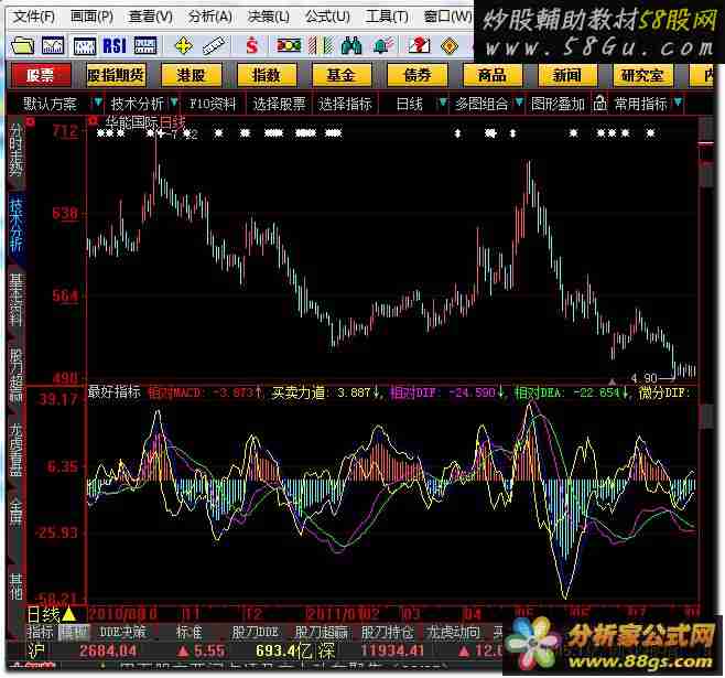 很牛的指标!慢慢琢磨吧,同时感谢老师的作品 {点击看本软件截图: 58股票 公式网 http://www. 58gu. com 整理} |