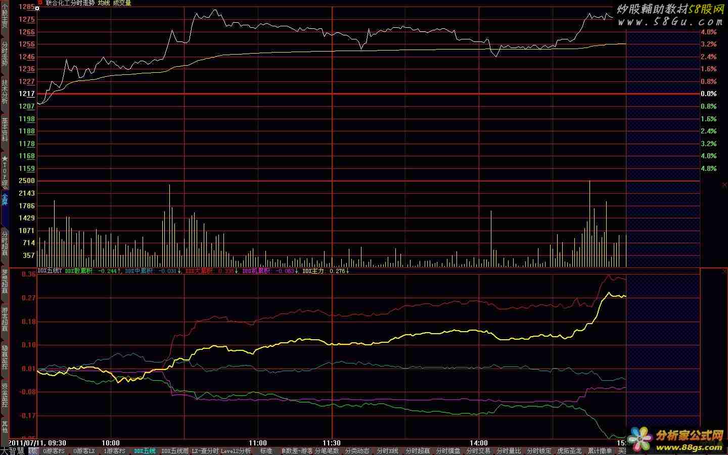 为了感谢新游客和雨阳的贡献,整合了分时五线的指标,简单实用。不加密。指标其实不是赢钱的主要根据,关键是自己操作股票的水平和盘面的感觉。DDX也仅仅是参考,大牛股用DDX很难发现得了。反而来讲,涨停K线,庄家K线确实非常的实用。