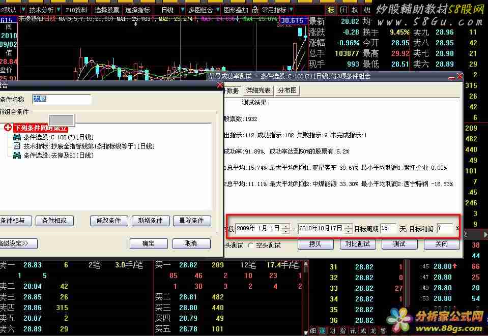 大底 大喜 淑女自编 成功率91%以上说明一下,此三个组合与数据无关,用大智慧时光隧道检测过,无未来函数和飘移现像! 最后声明一下,公式是死的,人是活的,决策买卖在于自己把握!!!如有风险,与本人无关!!!时光隧道测试方法!!可以检测信号漂移(检测未来函数),不会的同学可以学一下哦 大智慧时光隧道测试指标飘移方法!
