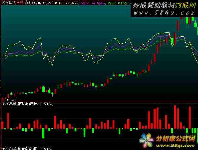 时刻监控个股与全A市场平均涨幅是强是弱!进而确定其可操作性。本指标采用柱体显示,加密、无未来、不限时。