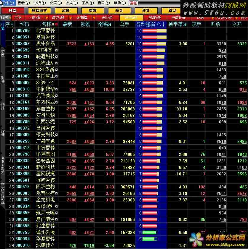排序公式:异动强弱(大智慧L2加密)