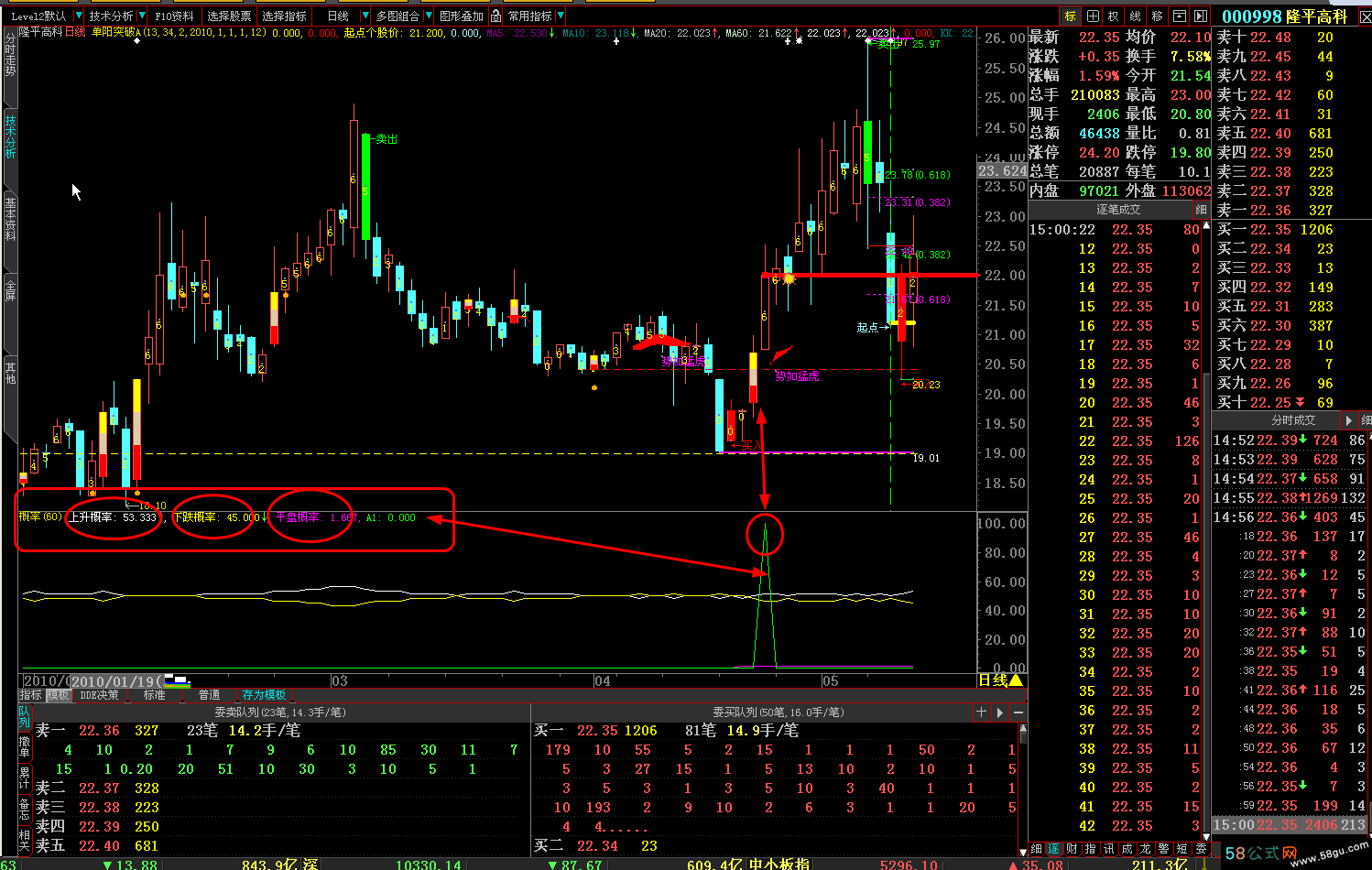 涨跌概率 参数m=60 {m:5,100,60} B:=c>ref(c,1); D:=c=ref(c,1); E:=c<ref(c,1); F:=count(B,M)+count(D,M)+count(E,M); 上升概率:100*count(B,M)/F; 下跌概率:100*count(E,M)/F; 平盘概率:100*count(D,M)/F; v1:=(c-LLV(L,9))/(HHV(H,15)-LLV(L,9))*100; v2:=sma(v1,3,1); v3:=sma(v2,3,1); A1:IF(c/ma(c,3)>=1.05 and ma(AMOUNT,3)/ma(AMOUNT,20)>1.5and count(V3<20,20)>=1,100,0); {点击看本软件截图: 58股票 公式网 http://www. 58gu. com 整理} |