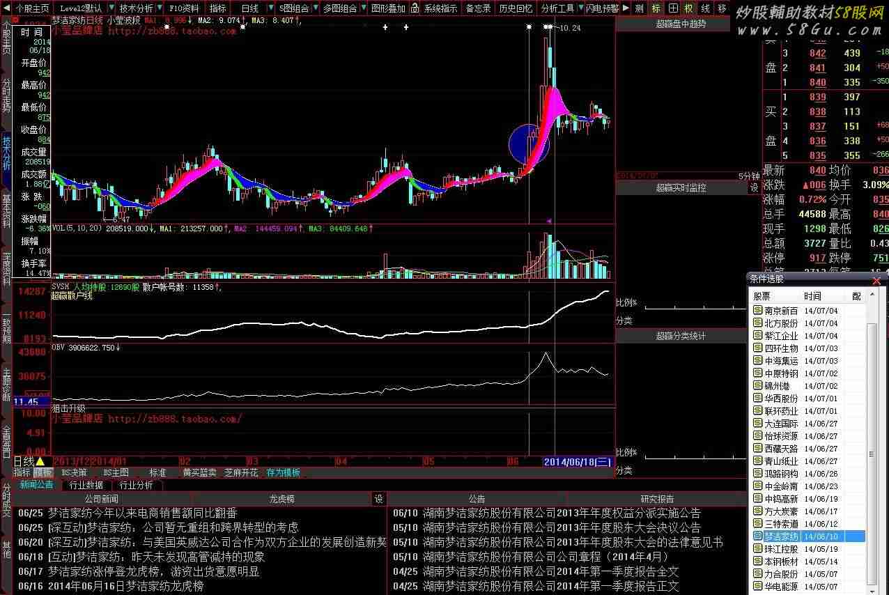 本人淘宝买的一个废指标,卖家应本人要求,添加了一些条件,单凭测试看看还算行,能不能抓到牛股,全凭个人能力!!