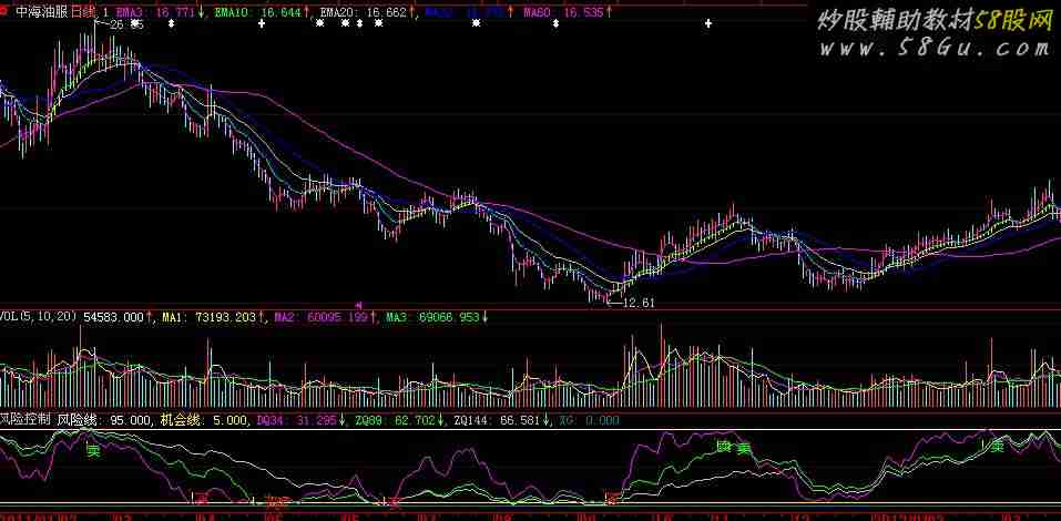 博弈市场最重要的就是了解风险!知道自己所处的位置,知道何时进退,本人借鉴了本论坛大哥的一个指标经改编,形成了现在的风险与机会控制指标。并做了相应的选股公式。现共享出来。个人觉得不错,欢迎交流讨论! 越靠近风险线,风险越大;反之,机会越大;结合周线,发现共振点,及时进出。风险线:95; 机会线:5; DQ34:EMA (100*(C-LLV(LOW,34))/(HHV(H,34)-LLV(LOW,34)),3); ZQ89:EMA (100*(C-LLV(LOW,89))/(HHV(H,89)-LLV(LOW,89)),3); ZQ144:EMA (100*(C-LLV(LOW,144))/(HHV(H,144)-LLV(LOW,144)),3); A1:=CROSS(DQ34,91); A2:=CROSS(91,DQ34); DRAWTEXT(A1,DQ34*0.9,'!'), COLORYELLOW; DRAWTEXT(A2,DQ34*0.9,'卖'), COLORGREEN; B1:=CROSS(5,DQ34); B2:=CROSS(DQ34,5); DRAWTEXT(B1,DQ34*4.0,'!'), COLORYELLOW; DRAWTEXT(B2,DQ34*2.0,'买'), COLORRED; XG:(CROSS(DQ34,5) AND CROSS(ZQ89,5)) OR (CROSS(DQ34,5) AND CROSS(ZQ144,5)) OR (CROSS(ZQ89,5) AND CROSS(ZQ144,5)); |