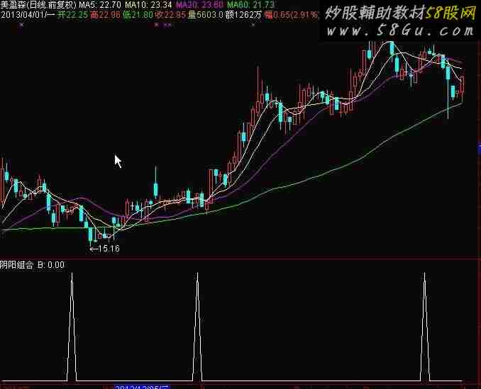 RSV:=(CLOSE-LLV(LOW,9))/(HHV(HIGH,9)-LLV(LOW,9))*100; K:=SMA(RSV,3,1); D:=SMA(K,3,1); BBI:=(MA(CLOSE,3)+MA(CLOSE,6)+MA(CLOSE,12)+MA(CLOSE,24))/4; MA1:=MA(C,5); MA2:=MA(C,60); A:=CROSS(K,D) AND K<50 AND C>REF(O,1) AND C>O AND C>BBI AND C>MA2; B:CROSS(K,D) AND K<50 AND C>REF(O,1) AND C>O AND C>MA1 AND C>MA2;