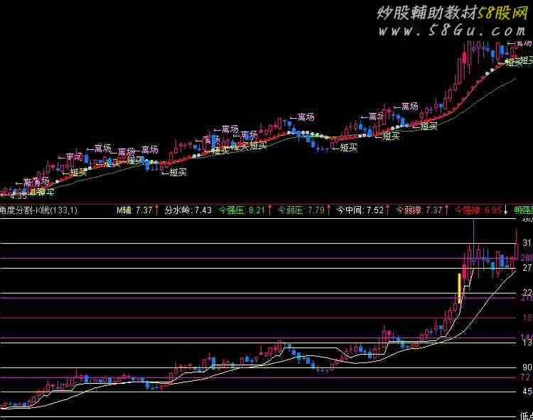 MA3:=MA(C,3); YTSL:=(3*C+L+O+H)/6; 辰星线:(20*YTSL+19*REF(YTSL,1)+18*REF(YTSL,2)+17*REF(YTSL,3)+16*REF(YTSL,4)+15*REF(YTSL,5)+14*REF(YTSL,6)+13*REF(YTSL,7)+12*REF(YTSL,8)+11*REF(YTSL,9)+10*REF(YTSL,10)+9*REF(YTSL,11)+8*REF(YTSL,12)+7*REF(YTSL,13)+6*REF(YTSL,14)+5*REF(YTSL,15)+4*REF(YTSL,16)+3*REF(YTSL,17)+2*REF(YTSL,18)+REF(YTSL,20))/211,COLORFFFF00; 牵牛线:MA(C,26),COLOR669933; 等待:IF(MA3<=辰星线,牵牛线,DRAWNULL),COLORGREEN,LINETHICK2; 中轨:=MA(C,26); 上轨:=中轨+STD(C,20); 下轨:=中轨-STD(C,20); 上极限:(中轨+2*STD(C,20)),COLORFF937F,LINETHICK2; 下极限:(中轨-2*STD(C,20)),COLORWHITE,LINETHICK2; 急速超跌:=(C-MA(C,34))/MA(C,34)*100<-14; VAR1:=(C>REF(C,1) AND C>REF(C,2)); VAR2:=(REF(VAR1,1) AND C<=REF(C,1) AND C>=REF(C,2)); VAR3:=(REF(VAR2,1) AND C>=REF(C,1) AND C<=REF(C,2)); VAR4:=(REF(VAR3,1) AND C<=REF(C,1) AND C>=REF(C,2)); VAR5:=(REF(VAR4,1) AND C>=REF(C,1) AND C<=REF(C,2)); VAR6:=(REF(VAR5,1) AND C<=REF(C,1) AND C>=REF(C,2)); VAR7:=(REF(VAR6,1) AND C>=REF(C,1) AND C<=REF(C,2)); VAR8:=(REF(VAR7,1) AND C<=REF(C,1) AND C>=REF(C,2)); VAR9:=(REF(VAR8,1) AND C>=REF(C,1) AND C<=REF(C,2)); VARA:=(REF(VAR9,1) AND C<=REF(C,1) AND C>=REF(C,2)); VARB:=(REF(VARA,1) AND C>=REF(C,1) AND C<=REF(C,2)); VARC:=(REF(VARB,1) AND C<=REF(C,1) AND C>=REF(C,2)); 持股:IF(VAR1 OR VAR2 OR VAR3 OR VAR4 OR VAR5 OR VAR6 OR VAR7 OR VAR8 OR VAR9 OR VARA OR VARB OR VARC,辰星线,DRAWNULL),COLORRED,POINTDOT,LINETHICK5; VARD:=(C<REF(C,1) AND C<REF(C,2)); VARE:=(REF(VARD,1) AND C>=REF(C,1) AND C<=REF(C,2)); VARF:=(REF(VARE,1) AND C<=REF(C,1) AND C>=REF(C,2)); VAR10:=(REF(VARF,1) AND C>=REF(C,1) AND C<=REF(C,2)); VAR11:=(REF(VAR10,1) AND C<=REF(C,1) AND C>=REF(C,2)); VAR12:=(REF(VAR11,1) AND C>=REF(C,1) AND C<=REF(C,2)); VAR13:=(REF(VAR12,1) AND C<=REF(C,1) AND C>=REF(C,2)); VAR14:=(REF(VAR13,1) AND C>=REF(C,1) AND C<=REF(C,2)); VAR15:=(REF(VAR14,1) AND C<=REF(C,1) AND C>=REF(C,2)); VAR16:=(REF(VAR15,1) AND C>=REF(C,1) AND C<=REF(C,2)); VAR17:=(REF(VAR16,1) AND C<=REF(C,1) AND C>=REF(C,2)); VAR18:=(REF(VAR17,1) AND C>=REF(C,1) AND C<=REF(C,2)); 持币:IF(VARD OR VARE OR VARF OR VAR10 OR VAR11 OR VAR12 OR VAR13 OR VAR14 OR VAR15 OR VAR16 OR VAR17 OR VAR18,辰星线,DRAWNULL),COLORLIGRAY,POINTDOT,LINETHICK5; VAR19:=((REF(VARD OR VARE OR VARF OR VAR10 OR VAR11 OR VAR12 OR VAR13 OR VAR14 OR VAR15 OR VAR16 OR VAR17 OR VAR18,1)) AND VAR1); VAR1A:=((REF(VAR1 OR VAR2 OR VAR3 OR VAR4 OR VAR5 OR VAR6 OR VAR7 OR VAR8 OR VAR9 OR VARA OR VARB OR VARC,1)) AND VARD); DRAWTEXT(VAR19,L,'←短买'),COLOR33FFCC; DRAWTEXT(VAR1A,H+0.1,'←离场'),COLORFF99FF; |