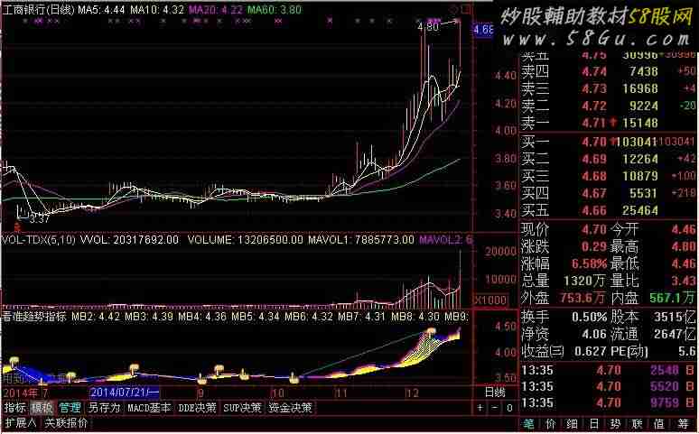 MB1:=EMA(C,5),COLORRED,LINETHICK2;MB2:EMA(MB1,2),COLORYELLOW;MB3:EMA(MB2,2),COLORYELLOW;MB4:EMA(MB3,2),COLORYELLOW;MB5:EMA(MB4,2),COLORYELLOW;MB6:EMA(MB5,2),COLORYELLOW;MB7:EMA(MB6,2),COLORYELLOW;MB8:EMA(MB7,2),COLORYELLOW;MB9:EMA(MB8,2),COLORYELLOW;MB10:EMA(MB9,2),COLORYELLOW;MB11:EMA(MB10,2),COLORYELLOW;MB12:EMA(MB11,2),COLORYELLOW;MB13:EMA(MB12,2),COLORYELLOW;MB14:EMA(MB13,2),COLORYELLOW;A1:IF(MB1<REF(MB1,1),MB2,DRAWNULL),COLORBLUE,LINETHICK1;A2:IF(MB2<REF(MB2,1),MB2,DRAWNULL),COLORBLUE,LINETHICK1;A3:IF(MB3<REF(MB3,1),MB3,DRAWNULL),COLORBLUE,LINETHICK1;A4:IF(MB4<REF(MB4,1),MB4,DRAWNULL),COLORBLUE,LINETHICK1;A5:IF(MB5<REF(MB5,1),MB5,DRAWNULL),COLORBLUE,LINETHICK1;A6:IF(MB6<REF(MB6,1),MB6,DRAWNULL),COLORBLUE,LINETHICK1;A7:IF(MB7<REF(MB7,1),MB7,DRAWNULL),COLORBLUE,LINETHICK1;A8:IF(MB8<REF(MB8,1),MB8,DRAWNULL),COLORBLUE,LINETHICK1;A9:IF(MB9<REF(MB9,1),MB9,DRAWNULL),COLORBLUE,LINETHICK1;A10:IF(MB10<REF(MB10,1),MB10,DRAWNULL),COLORBLUE,LINETHICK1;A11:IF(MB11<REF(MB11,1),MB11,DRAWNULL),COLORBLUE,LINETHICK1;A12:IF(MB12<REF(MB12,1),MB12,DRAWNULL),COLORBLUE,LINETHICK1;A13:IF(MB13<REF(MB13,1),MB13,DRAWNULL),COLORBLUE,LINETHICK1;A14:IF(MB14<REF(MB14,1),MB14,DRAWNULL),COLORBLUE,LINETHICK1;VAR2:MB1,COLORMAGENTA,LINETHICK2;VAR3:IF(VAR2<REF(VAR2,1),VAR2,DRAWNULL),COLORBLUE,LINETHICK2;操作线:=EMA(C,7),COLOR00FF00;A:=(REF(操作线,1));STICKLINE((操作线>A),A,操作线,5,0),COLOR0000FF,NODRAW;STICKLINE((操作线<=A),A,操作线,5,0),COLOR00FF00,NODRAW;{MA5:MA(C,5);MA10:MA(C,10);MA20:MA(C,20);MA60:MA(C,60);MA120:MA(C,120);MA250:MA(C,250)};DRAWKLINE(H,O,L,C),NODRAW;K0:=MA(CLOSE,3);D0:=MA(K0,3);DRAWLINE(D0>=HHV(D0,21),D0,D0<=LLV(D0,21),D0,0),COLOR00BBFF,LINETHICK1;DGL:=DRAWLINE(D0>=HHV(D0,21),D0,D0<=LLV(D0,21),D0,1);DGL0:=DRAWLINE(D0<=LLV(D0,21),D0,D0>=HHV(D0,21),D0,1);DRAWICON (CROSS(K0,D0) AND CROSS(K0,DGL),D0*0.995,11);DRAWLINE(D0<=LLV(D0,21),D0,D0>=HHV(D0,21),D0,0),COLORLICYAN,LINETHICK1;DRAWICON (CROSS(D0,K0) AND CROSS(DGL0,K0),D0*1.008,12); |