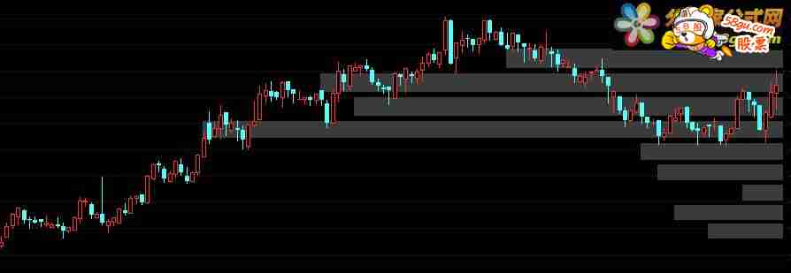 DA1:=IF(130>TOTALBARSCOUNT,TOTALBARSCOUNT,130); DA:=IF(CURRBARSCOUNT>DA1,0,DA1); HI:=REFDATE(HHV(H,DA),DATE); LO:=REFDATE(LLV(L,DA),DATE); C1:=IF(CURRBARSCOUNT<=DA,C,DRAWNULL); GZ:=EXP(LN(HI/LO)/10); LH1:=SUM(IF(C1>=(HI/GZ),V,0),DA); LH2:=SUM(IF(C1>=(HI/POW(GZ,2)) AND C1<(HI/GZ),V,0),DA); LH3:=SUM(IF(C1>=(HI/POW(GZ,3)) AND C1<(HI/POW(GZ,2)),V,0),DA); LH4:=SUM(IF(C1>=(HI/POW(GZ,4)) AND C1<(HI/POW(GZ,3)),V,0),DA); LH5:=SUM(IF(C1>=(HI/POW(GZ,5)) AND C1<(HI/POW(GZ,4)),V,0),DA); LH6:=SUM(IF(C1>=(HI/POW(GZ,6)) AND C1<(HI/POW(GZ,5)),V,0),DA); LH7:=SUM(IF(C1>=(HI/POW(GZ,7)) AND C1<(HI/POW(GZ,6)),V,0),DA); LH8:=SUM(IF(C1>=(HI/POW(GZ,8)) AND C1<(HI/POW(GZ,7)),V,0),DA); LH9:=SUM(IF(C1>=(LO*GZ) AND C1<LO*POW(GZ,2),V,0),DA); LH10:=SUM(IF(C1>=LO AND C1<LO*GZ,V,0),DA); L1:=REFDATE(HHV(LH1,DA),DATE),LINETHICK0; L2:=REFDATE(HHV(LH2,DA),DATE),LINETHICK0; L3:=REFDATE(HHV(LH3,DA),DATE),LINETHICK0; L4:=REFDATE(HHV(LH4,DA),DATE); L5:=REFDATE(HHV(LH5,DA),DATE); L6:=REFDATE(HHV(LH6,DA),DATE); L7:=REFDATE(HHV(LH7,DA),DATE); L8:=REFDATE(HHV(LH8,DA),DATE); L9:=REFDATE(HHV(LH9,DA),DATE); L10:=REFDATE(HHV(LH10,DA),DATE); SS:=(L1+L2+L3+L4+L5+L6+L7+L8+L9+L10); STICKLINE(CEILING(DA*L1/SS)*3>=CURRBARSCOUNT,HI*99/100,HI/GZ,9,0)COLOR3C3C3A,LINETHICK3; STICKLINE(CEILING(DA*L2/SS)*3>=CURRBARSCOUNT,HI/POW(GZ,1)*99/100,HI/POW(GZ,2),9,0)COLOR3C3C3A,LINETHICK3; STICKLINE(CEILING(DA*L3/SS)*3>=CURRBARSCOUNT,HI/POW(GZ,2)*99/100,HI/POW(GZ,3),9,0)COLOR3C3C3A,LINETHICK3; STICKLINE(CEILING(DA*L4/SS)*3>=CURRBARSCOUNT,HI/POW(GZ,3)*99/100,HI/POW(GZ,4),9,0)COLOR3C3C3A,LINETHICK3; STICKLINE(CEILING(DA*L5/SS)*3>=CURRBARSCOUNT,HI/POW(GZ,4)*99/100,HI/POW(GZ,5),9,0)COLOR3C3C3A,LINETHICK3; STICKLINE(CEILING(DA*L6/SS)*3>=CURRBARSCOUNT,HI/POW(GZ,5)*99/100,HI/POW(GZ,6),9,0)COLOR3C3C3A,LINETHICK3; STICKLINE(CEILING(DA*L7/SS)*3>=CURRBARSCOUNT,HI/POW(GZ,6)*99/100,HI/POW(GZ,7),9,0)COLOR3C3C3A,LINETHICK3; STICKLINE(CEILING(DA*L8/SS)*3>=CURRBARSCOUNT,LO*POW(GZ,2),LO*POW(GZ,3)*99/100,9,0)COLOR3C3C3A,LINETHICK3; STICKLINE(CEILING(DA*L9/SS)*3>=CURRBARSCOUNT,LO*POW(GZ,1),LO*POW(GZ,2)*99/100,9,0)COLOR3C3C3A,LINETHICK3; STICKLINE(CEILING(DA*L10/SS)*3>=CURRBARSCOUNT,LO,LO*POW(GZ,1)*99/100,9,0)COLOR3C3C3A,LINETHICK3; DRAWKLINE(H,O,L,C);