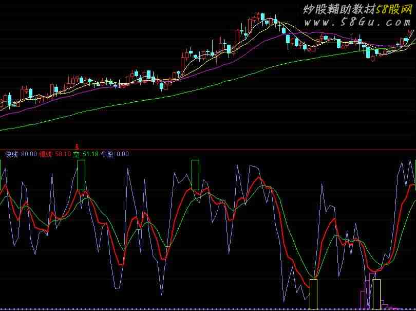 发一个自己多年收藏的指标公式,用来判断买点N:=9;M1:=3;M2:=3;P:=9;RSV:=(CLOSE-LLV(LOW,N))/(HHV(HIGH,N)-LLV(LOW,N))*100;K:=SMA(RSV,M1,1),COLORRED,LINETHICK2;D:=SMA(K,M2,1),COLOR00FF00;JJ:=P*(3*D-2*K),COLOR00FF00;J:=((3 * K) - (2 * D));MAIRU:= CROSS(K,D) AND K<20;MAICHU:= CROSS(D,K) AND D>80;VAR2:=REF(LOW,1);VAR3:=SMA(ABS(LOW-VAR2),3,1)/SMA(MAX(LOW-VAR2,0),3,1)*100;VAR4:=EMA(IF(CLOSE*1.3,VAR3*10,VAR3/10),3);VAR5:=LLV(LOW,30);VAR6:=HHV(VAR4,30);VAR7:=IF(MA(CLOSE,58),1,0);VAR8:=EMA(IF(LOW<=VAR5,(VAR4+VAR6*2)/2,0),3)/618*VAR7;VAR9:=IF(VAR8>100,100,VAR8);吸筹:STICKLINE(VAR9>-120,0,VAR9,6,1),COLORF00FF0;快线:(CLOSE-LLV(LOW,N))/(HHV(HIGH,N)-LLV(LOW,N))*100,COLORFF937F;慢线:SMA(快线,M1,1),COLORRED,LINETHICK2;空:SMA(慢线,M2,1),COLOR00FF00;牛股:IF(BARSLAST(CROSS(慢线,空))<P AND BARSLAST(CROSS(空,慢线))<P AND CROSS(慢线,空) AND 慢线<20,90,0),STICK,COLORFF937F;STICKLINE(牛股,0,90,6,1),LINETHICK4,STICK,COLORFF937F;BB:=IF(BARSLAST(CROSS(慢线,快线))>=3 AND CROSS(快线,慢线) AND 慢线<30,20,0);买:STICKLINE(BB,0,20,7,1),COLORYELLOW;AA:=IF(BARSLAST(CROSS(快线,慢线))>=4 AND CROSS(慢线,快线) AND 快线>50,20,0);卖:STICKLINE(AA,80,100,7,1),COLOR00FF00; |