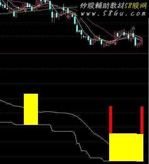 A1:=3*EMA((C-LLV(L,30))/(HHV(H,30)-LLV(L,30))*100,5)-2*EMA((C-LLV(L,30))/(HHV(H,30)-LLV(L,30))*100,5); A2:=LLV(L,21); A3:LLV(L,30); A4:=EMA(A1,5); A5:=(HHV(H,34)-C)/(HHV(H,34)-LLV(L,34))*100; A6:MA(C,20); DIFF := EMA(CLOSE,12) - EMA(CLOSE,26); DEA :=EMA(DIFF,9); 基础:=(DIFF<-0.1 AND DIFF>DEA); 中线买入:=CROSS(A1,A4)AND (A5-A4)>40 AND 基础; STICKLINE(CROSS(A1,A4) AND (A5-A4)>40 AND 基础 ,A3,A3*1.2,4,0),COLORRED; STICKLINE( 基础,A3,A3*1.1,4,0),COLORYELLOW;