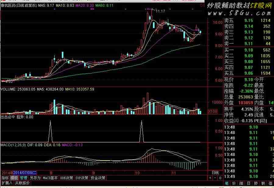 个人自用的分时抓涨停指标(通达信 分时指标 副图 贴图)