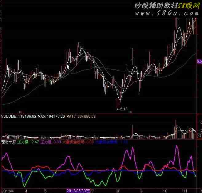 V1:=(C*2+H+L)/4*10; V2:=EMA(V1,13)-EMA(V1,34); V3:=EMA(V2,5); V4:=2*(V2-V3)*5.5; 主力撤: IF(V4<=0,V4,0),COLOR00FF00,LINETHICK2; 主力进: IF(V4>=0,V4,0),COLORFF00FF,LINETHICK2; V5:=(HHV(INDEXH,8)-INDEXC)/(HHV(INDEXH,8)-LLV(INDEXL,8))*8; V6:=EMA(3*V5-2*SMA(V5,18,1),5); V7:=(INDEXC-LLV(INDEXL,8))/(HHV(INDEXH,8)-LLV(INDEXL,8))*10; V8:=(INDEXC*2+INDEXH+INDEXL)/4; V9:=EMA(V8,13)-EMA(V8,34); VA:=EMA(V9,3); VB:=(V9-VA)/2; 大盘资金进场: IF(VB>=0,VB,0),colorred,LINETHICK2; 大盘资金撤走: IF(VB<=0,VB,0),colorblue,LINETHICK2; |