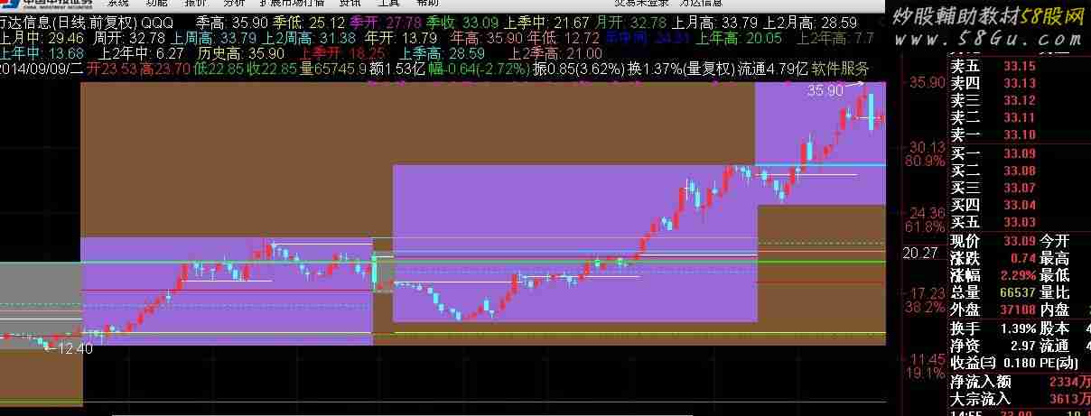 MNC:=C#YEAR,NODRAW; MNO:=O#YEAR,NODRAW; MNH:=H#YEAR,NODRAW; MNL:=L#YEAR,NODRAW; STICKLINE(MNC>=MNO,MNH,MNL,5,0),COLOR34567F,; STICKLINE(MNC<MNO,MNH,MNL,5,0),COLORLICYAN,; MJC:=C#SEASON,NODRAW; MJO:=O#SEASON,NODRAW; MJH:=H#SEASON,NODRAW; MJL:=L#SEASON,NODRAW; STICKLINE(MJC>=MJO,MJH,MJL,5,0),COLORD66998; STICKLINE(MJC<MJO,MJH,MJL,5,0),COLORGRAY;JGT:=(O#SEASON<REF(O#SEASON,1))OR(O#SEASON>REF(O#SEASON,1))OR(H#SEASON>REF(H#SEASON,1)); T0:=BARSLAST(JGT); 季高:HHV(H,T0+1),NODRAW; 季低:LLV(L,T0+1),NODRAW; 季开:O#SEASON,COLORMAGENTA,NODRAW; 季收:C#SEASON,NODRAW; 季中:=(季高+季低)/2,COLORYELLOW,NODRAW; 上季中:REF(季中,T0+1)COLORYELLOW,NODRAW; 月开:O#MONTH,COLORLIGREEN,NODRAW; 月高:=H#MONTH,NODRAW; 月低:=L#MONTH,NODRAW; 月收:=C#MONTH,NODRAW; 月开日:=BARSLAST(MONTH-REF(MONTH,1)=1)NODRAW; 月中:=(月高+月低)/2,POINTDOT,COLORWHITE,; 上月高:REF(月高,月开日+1)COLORWHITE,NODRAW; 上2月高:REF(上月高,月开日+1)COLORWHITE,NODRAW; 上月中:REF(月中,月开日+1)COLORYELLOW,NODRAW; 月中间:=(月高+月低)/2,POINTDOT,COLORWHITE,NODRAW;STICKLINE(月开,月开,月开,4,0),COLORWHITE;ZGT:=(H#WEEK<REF(H#WEEK,1)) OR (H#WEEK>REF(H#WEEK,1)); 周开日:=BARSLAST(ZGT); 周开:O#WEEK,COLORWHITE,NODRAW; 周高:=H#WEEK,NODRAW; 周低:=L#WEEK,NODRAW; 周收:=C#WEEK, COLORFF6EC7,NODRAW; 上周高:REF(周高,周开日+1)COLORCYAN,NODRAW; 上2周高:REF(上周高,周开日+1)COLORCYAN,NODRAW;