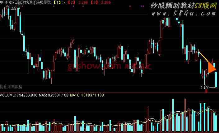 CP1:=MA(L+(H-L)/2,5),CIRCLEDOT,COLORMAGENTA; CP2:DRAWLINE(CURRBARSCOUNT=10,CP1,CURRBARSCOUNT=2,CP1,0),COLORYELLOW,LINETHICK2; CP3:DRAWLINE(CURRBARSCOUNT=5,CP1,CURRBARSCOUNT=1,CP1,0),COLORRED,LINETHICK2; CP4:DRAWLINE(CURRBARSCOUNT=10,CP1,CURRBARSCOUNT=1,CP1,0),COLORRED,LINETHICK2; DRAWBAND(CP2,RGB(155,50,50),CP4,RGB(250,250,0)); DRAWBAND(CP3,RGB(100,50,50),CP4,RGB(250,100,0)); DRAWBAND(CP3,RGB(34,139,34),CP4,RGB(250,100,0)); {CP5:=REF(CP1,1); DRAWTEXT(CP1<CP5 AND CP3<CP4,CP3,'转强'),COLOR33FFCC; DRAWTEXT(CP1<CP5 AND CP2>CP4,CP3,'转弱'),COLOR33FFCC;} 指南针!指出方向,指出趋势。 喜欢的可以直接加上,加到主图中就可以了 ! 有画线函数,玩玩可以,决策靠自己