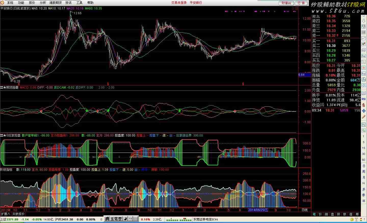 最近有一个友友给我一个”阶段指标“,他说看庄家控盘,但是不知道怎么看, 希望我给它优化下,我看指标后,发现有WINNER,去WINNER后,对比后这友友好看出感觉了! 指标好不好用,还是看个人研究和了解是否到位! ZLCM:=EMA(WINNER(CLOSE)*70,3);{//主力筹码估算}SHCM:=EMA((WINNER(CLOSE*1.1)-WINNER(CLOSE*0.9))*80,3);{//散户筹码估算}ZSHTL:=SHCM/(ZLCM+SHCM)*200;{//散户套牢筹码比率}ZZLKP:=ZLCM/(ZLCM+SHCM)*200;{//主力控盘筹码比率}ZCMZL:=MA(ZLCM+SHCM,13);{//市场筹码总量}ZZNTS:=BARSLAST(ZSHTL<90 AND REF(ZSHTL,1)>90);{//走牛天数}ZSHJJ:=EMA(ZSHTL,89);{//散户警戒}ZZLJJ:=EMA(ZZLKP,89);{//主力警戒}ZJLRQD:=INTPART(ZZLKP-ZZLJJ);{//资金流入强度}SH8:=EMA(ZSHTL,8); DKB:=IF(ZZLKP-REF(ZZLKP,1)>ZSHTL-REF(ZSHTL,1),1,0);散户套牢线1:=INTPART(ZSHTL),COLORFFEEBB,LINETHICK2;主力控盘线1:=INTPART(ZZLKP),COLOR4D4DFF,LINETHICK2; DRAWBAND(主力控盘线1,RGB(0,255,255),散户套牢线1,RGB(50,50,50)); {柱状线}STICKLINE(((主力控盘线1>REF(主力控盘线1,1)) AND (主力控盘线1>100)),主力控盘线1,散户套牢线1,2,0),COLOR8000FF;散:INTPART(ZSHTL),COLORFFEEBB,LINETHICK2;主力:INTPART(ZZLKP),COLOR4D4DFF,LINETHICK2; {资金流入线:ZJLRQD,,COLOR7F00FF,LINETHICK2;资金强弱线:15,COLORFF80FF,LINETHICK2,CROSSDOT;控盘临界线:55,COLORFF937F,LINETHICK2,CROSSDOT;强势控盘线:75,COLORFF3399,LINETHICK2,CROSSDOT;}; {主力监控}B1:=(HHV(H,35)-C)/(HHV(H,35)-LLV(LOW,35))*100-35; B2:=SMA(B1,35,1)+100; B3:=(C-LLV(L,35))/(HHV(H,35)-LLV(L,35))*100; B4:=SMA(B3,3,1); B5:=SMA(B4,3,1)+100; B6:=B5-B2;控盘程度:(IF(B6>1,B6-1,0))*2.5,COLORRED,LINETHICK2;控盘度:100,COLORWHITE; {柱状线}控盘上:IF(控盘程度>REF(控盘程度,1), 控盘程度,DRAWNULL), STICK,COLORYELLOW,LINETHICK1;控盘下:IF(控盘程度<REF(控盘程度,1), 控盘程度,DRAWNULL), STICK,COLORFF9900,LINETHICK1;进:IF(控盘程度>REF(控盘程度,1),5,DRAWNULL),CIRCLEDOT,COLORYELLOW; 出:IF(控盘程度<REF(控盘程度,1),5,DRAWNULL),CIRCLEDOT,COLORFF9900; {SAR}持币:IF(SAR(10,2,20)>=H,100,DRAWNULL),CIRCLEDOT,COLORBLUE; 持股:IF(SAR(10,2,20)<=L,100,DRAWNULL),CIRCLEDOT,COLORRED; |